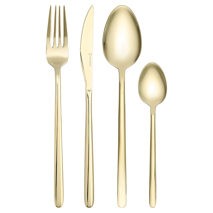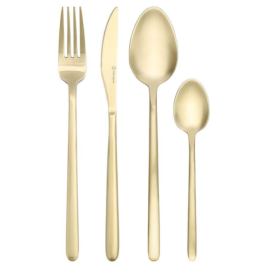 Набор столовых приборов Pure, золотистые глянцевые, 16 пред. от Liberty Jones - цена 5900 руб (МРЦ). Для того, чтобы купить данный товар оптом по выгодной цене, пожалуйста, зарегистрируйтесь на сайте.