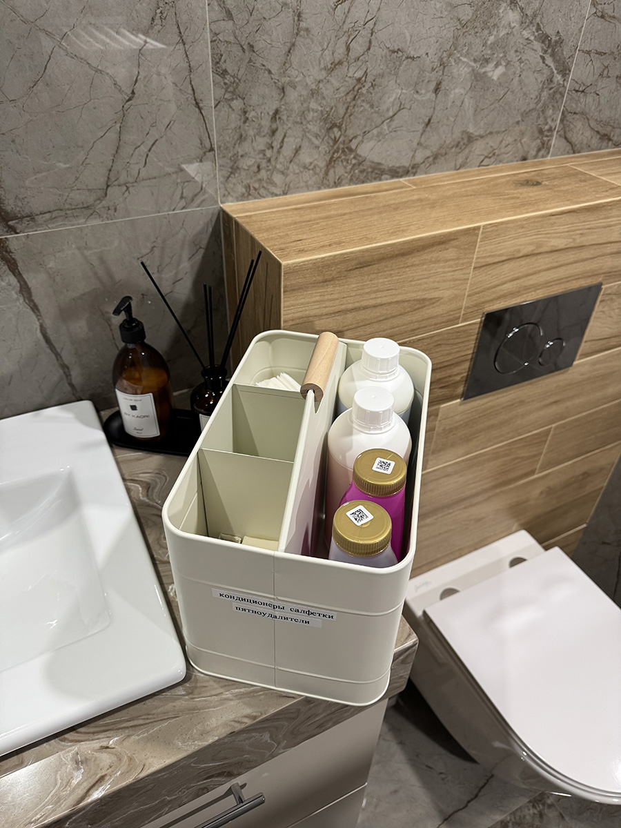- Органайзер имеет 4 отделения для удобного хранения различных моющих средств.