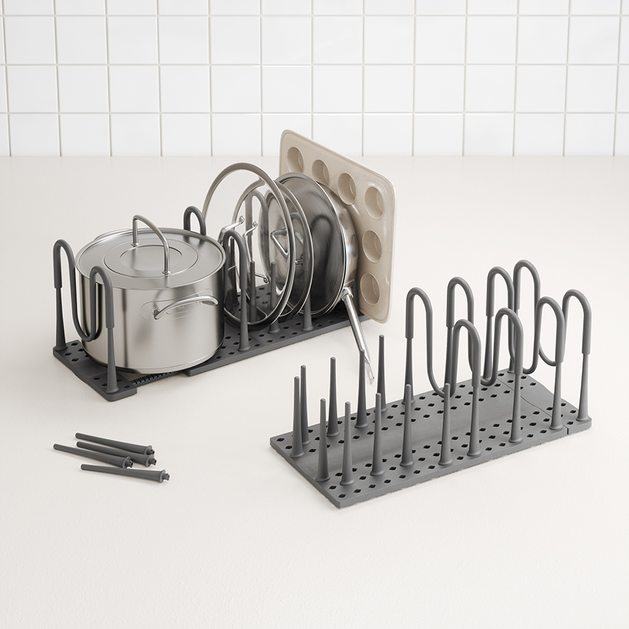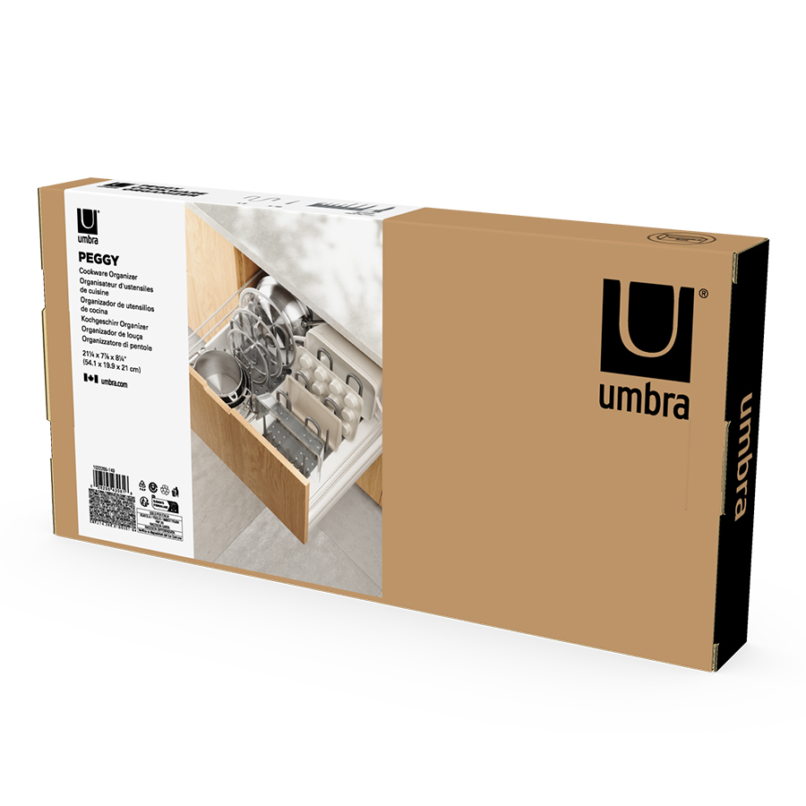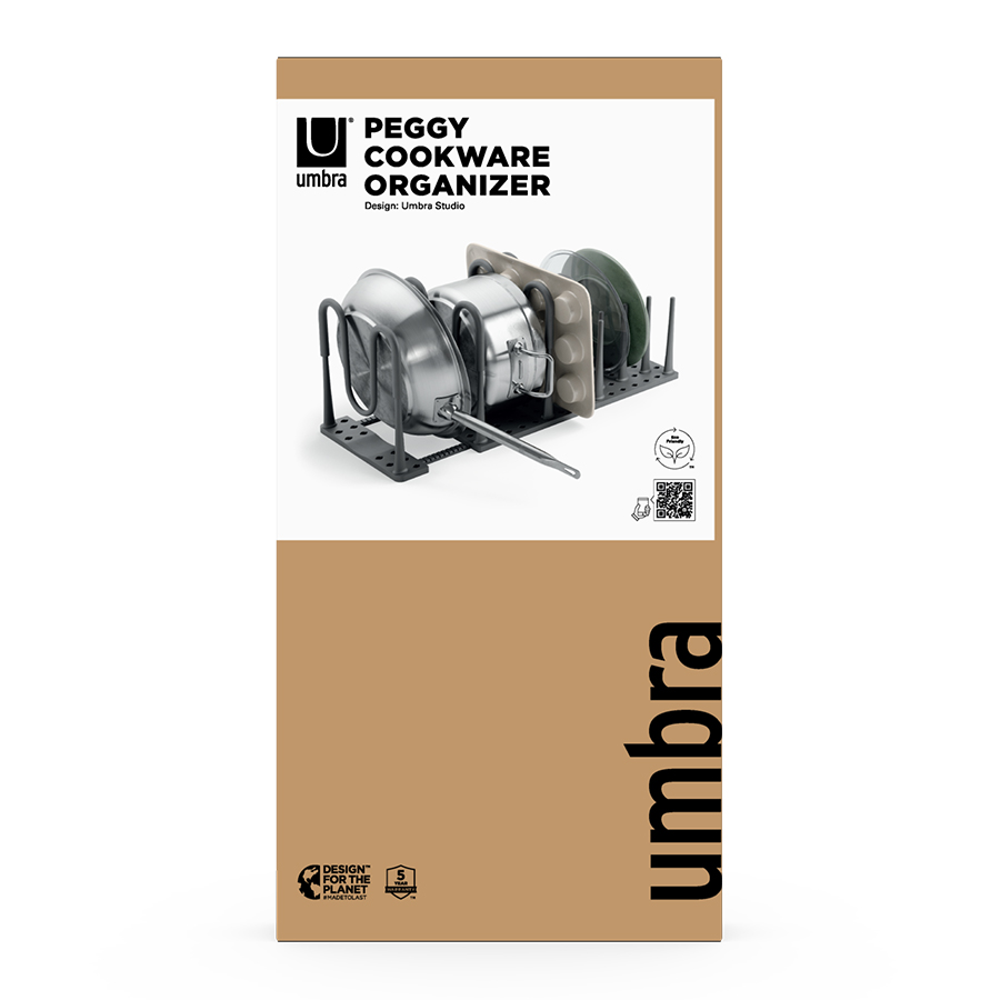 Органайзер Peggy – идеальное решение для поддержания порядка на кухне и быстрого доступа посуде. В нем удобно хранить кастрюли, сковородки, крышки и многое другое. Регулируемое основание и настраиваемые держатели позволяют разместить органайзер в кухонном шкафу любого размера. Никаких инструментов или крепежа не требуется.