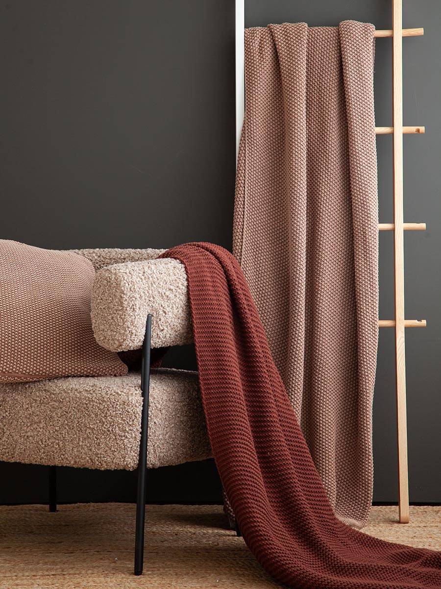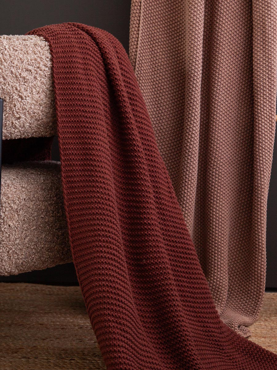 Плед из хлопка жемчужной вязки коричневого цвета из коллекции Essential, 130х180 см