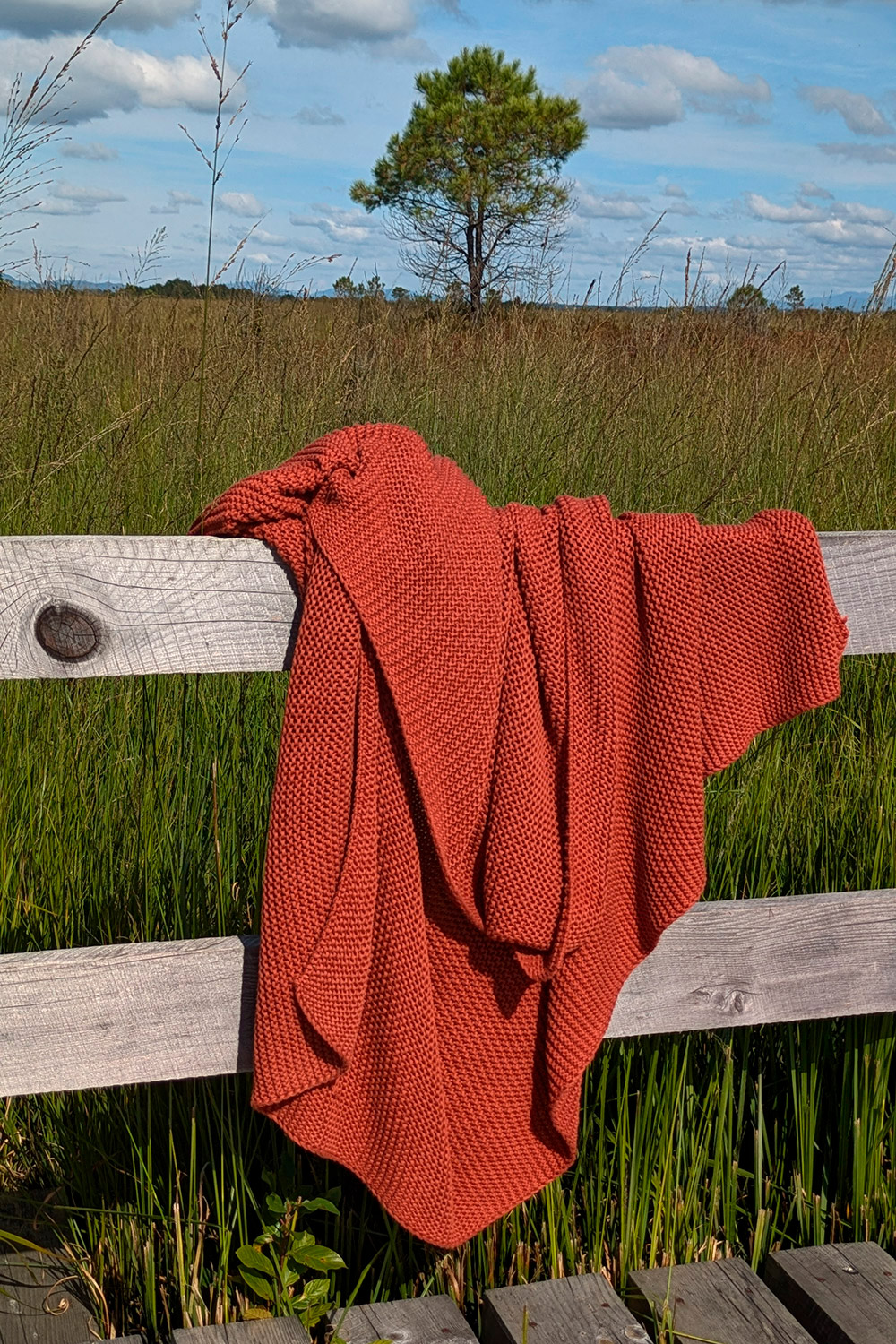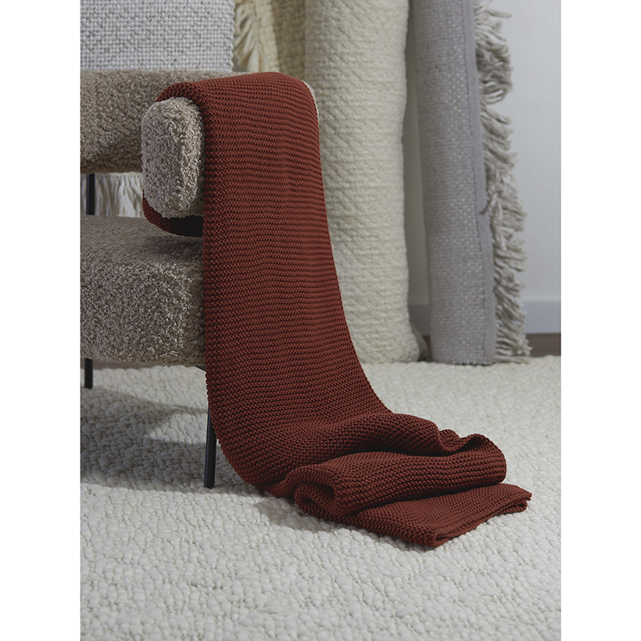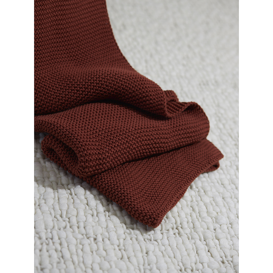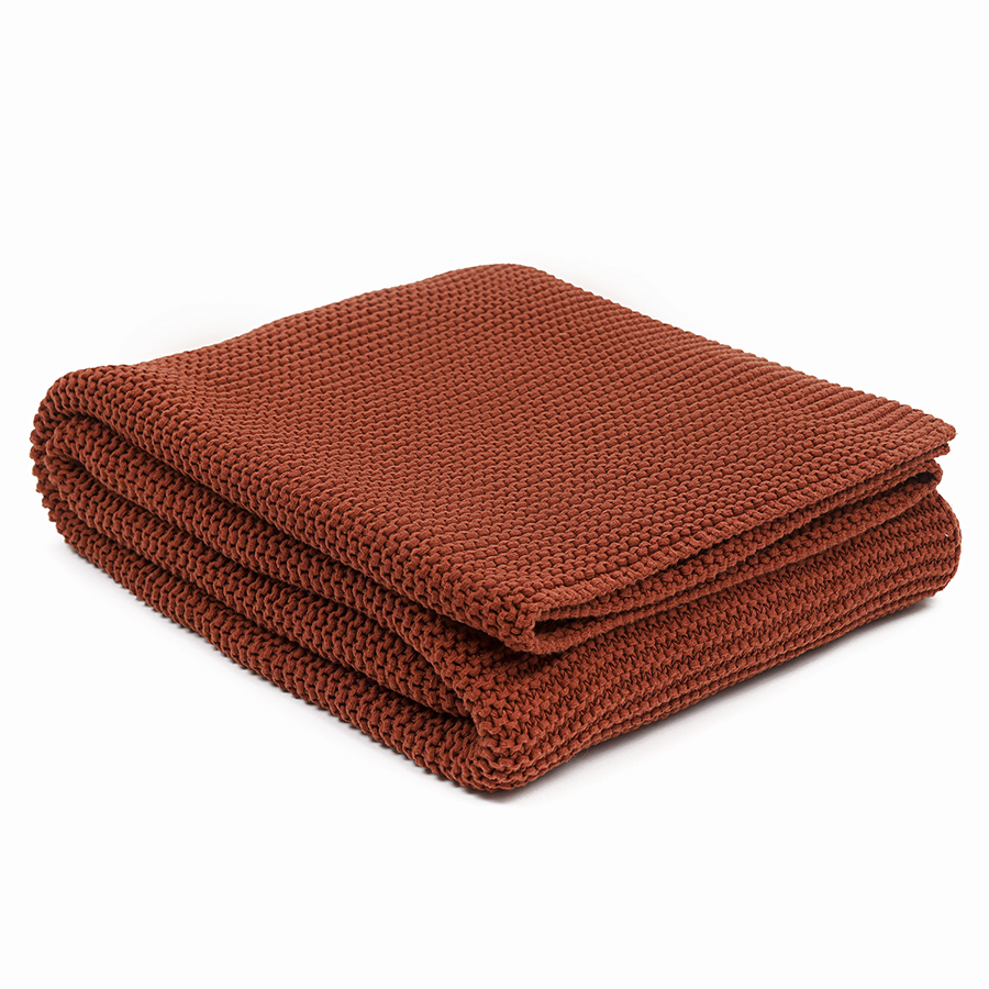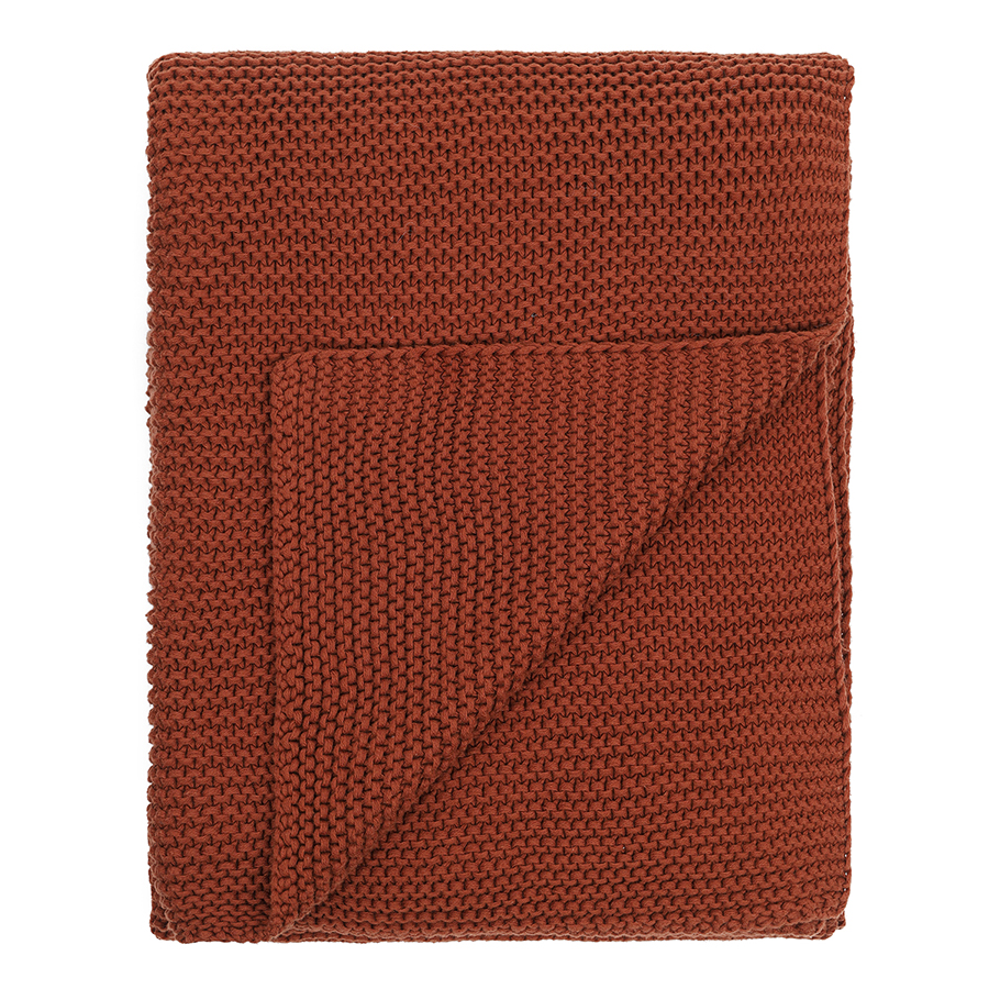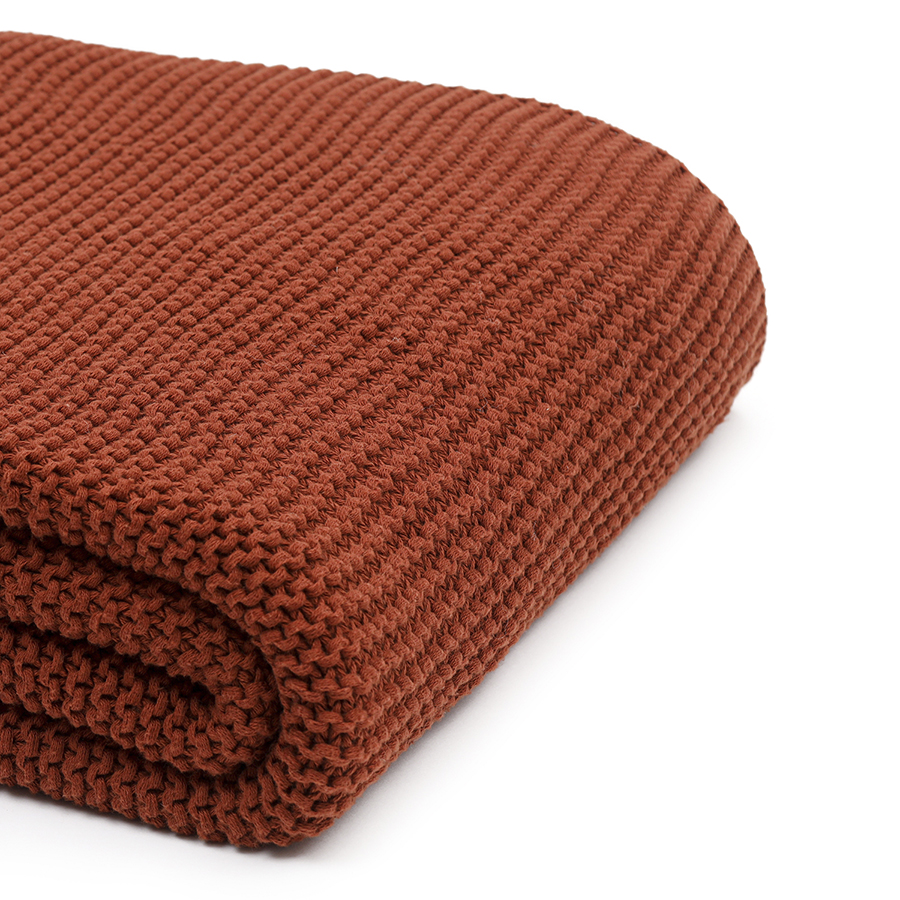 Плед из хлопка жемчужной вязки терракотового цвета из коллекции Essential, 130х180 см