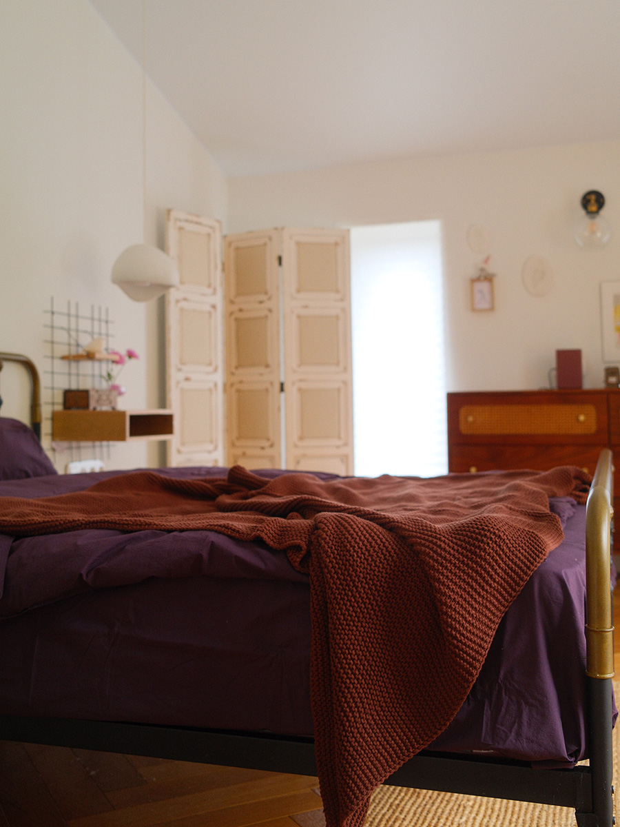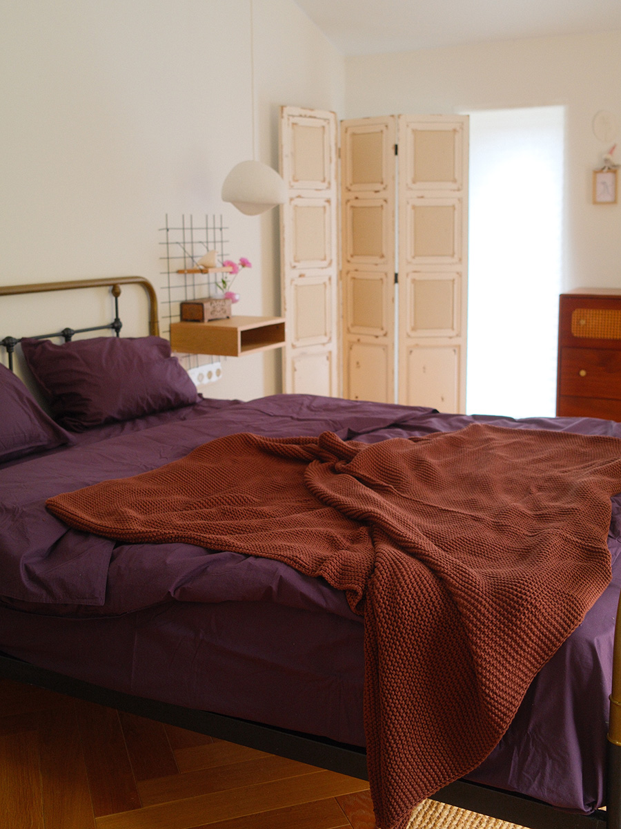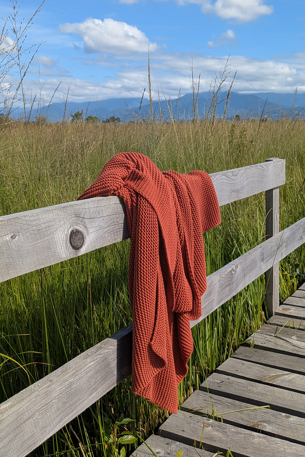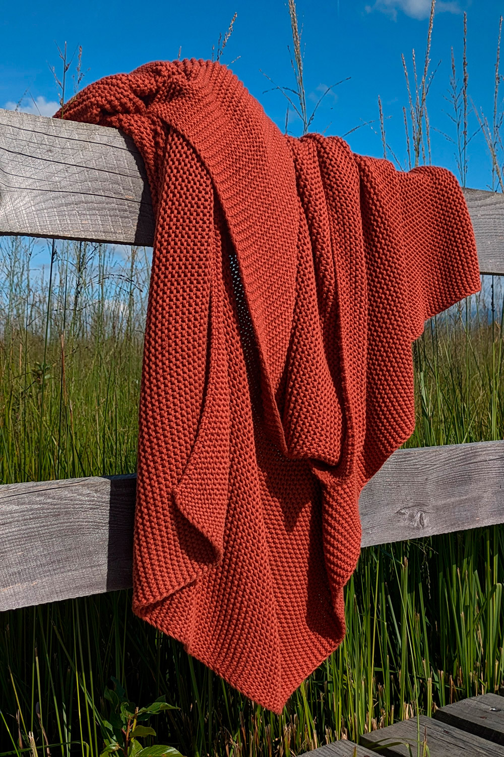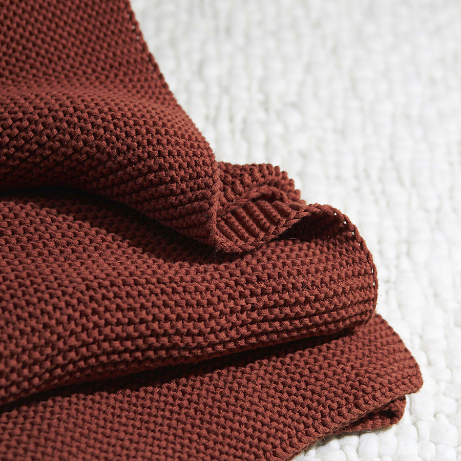 Плед из хлопка жемчужной вязки терракотового цвета из коллекции Essential, 130х180 см