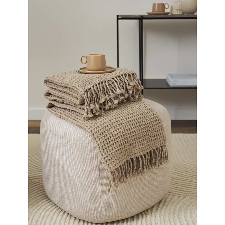 Плед из шерсти бежево-серого цвета из коллекции Essential, 130х180 см