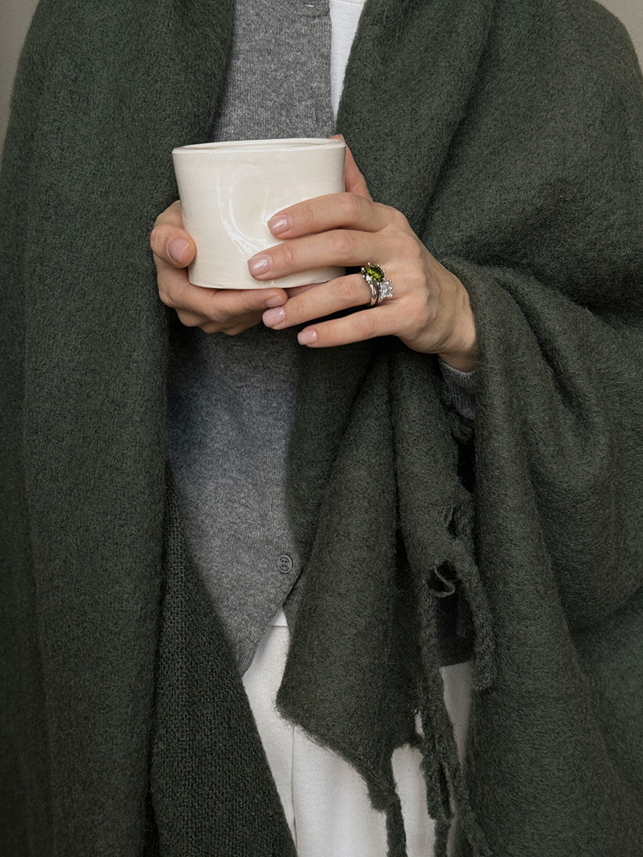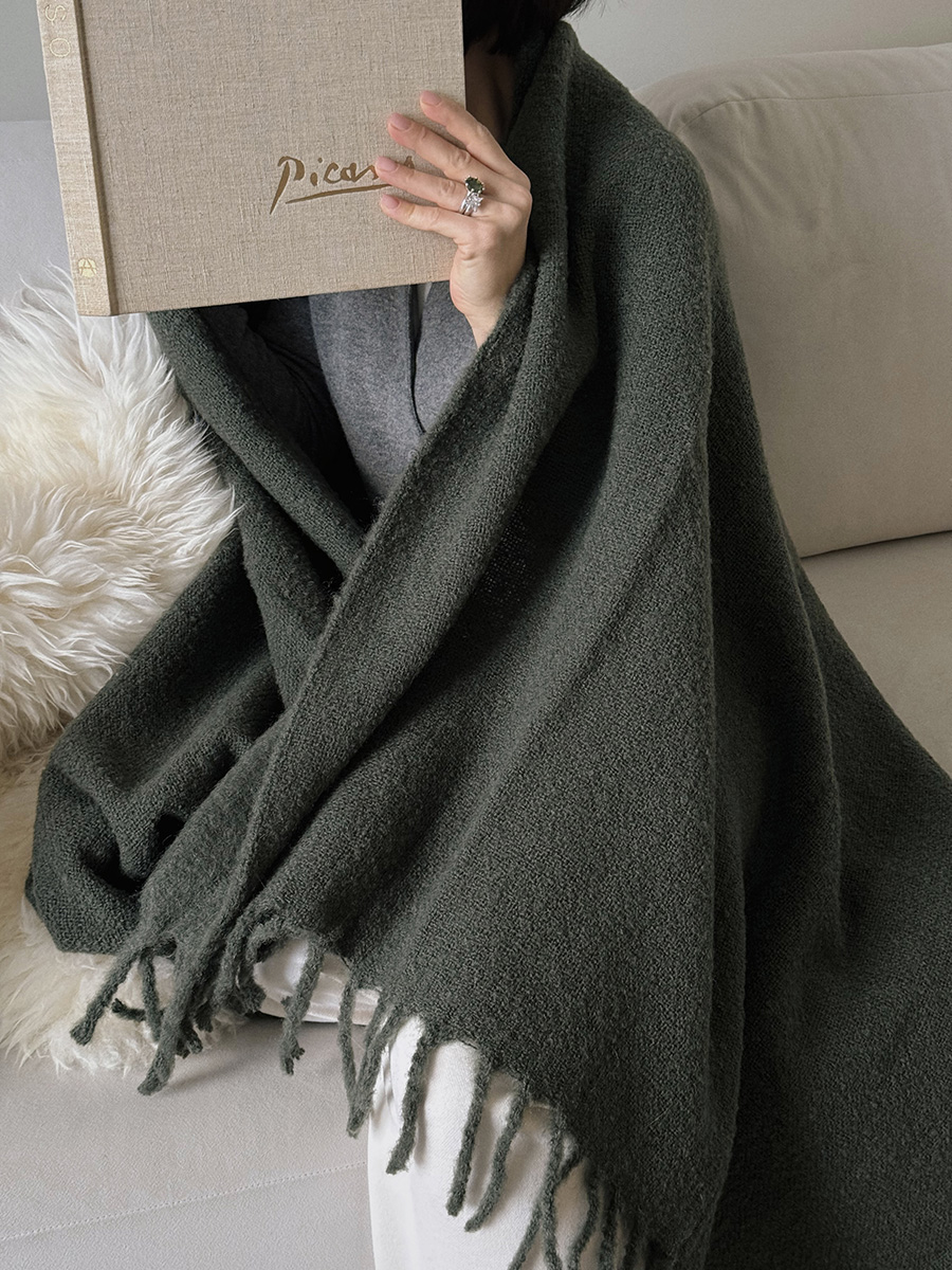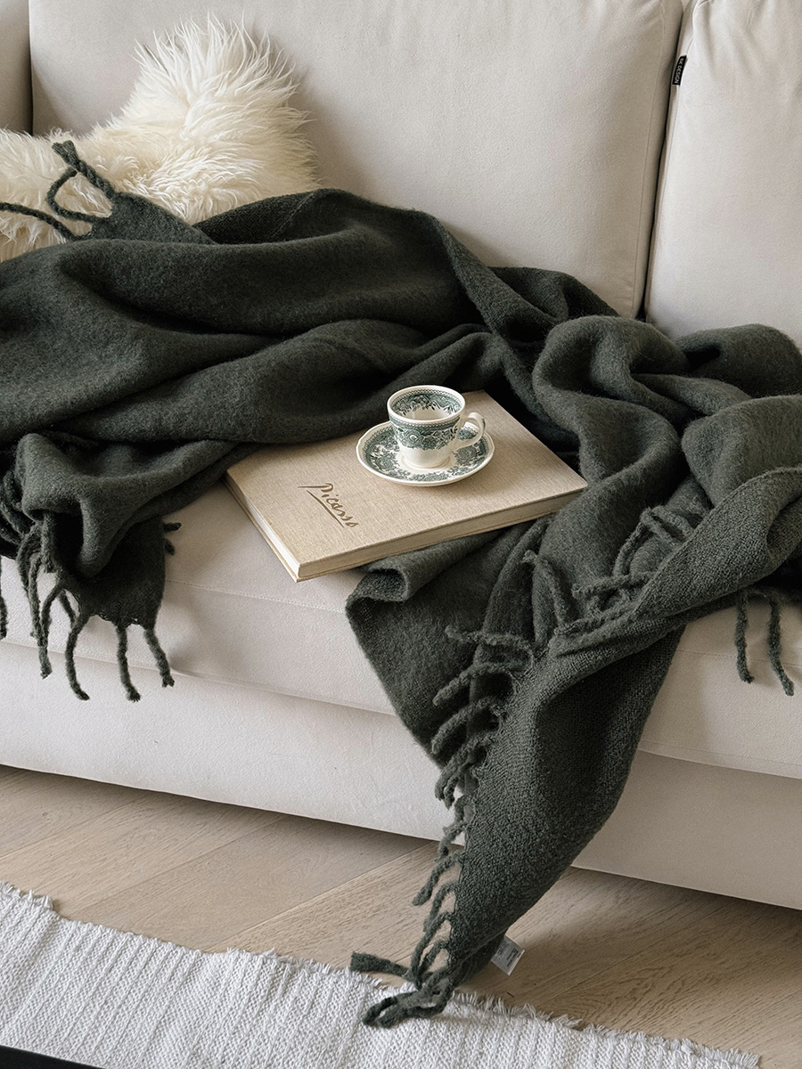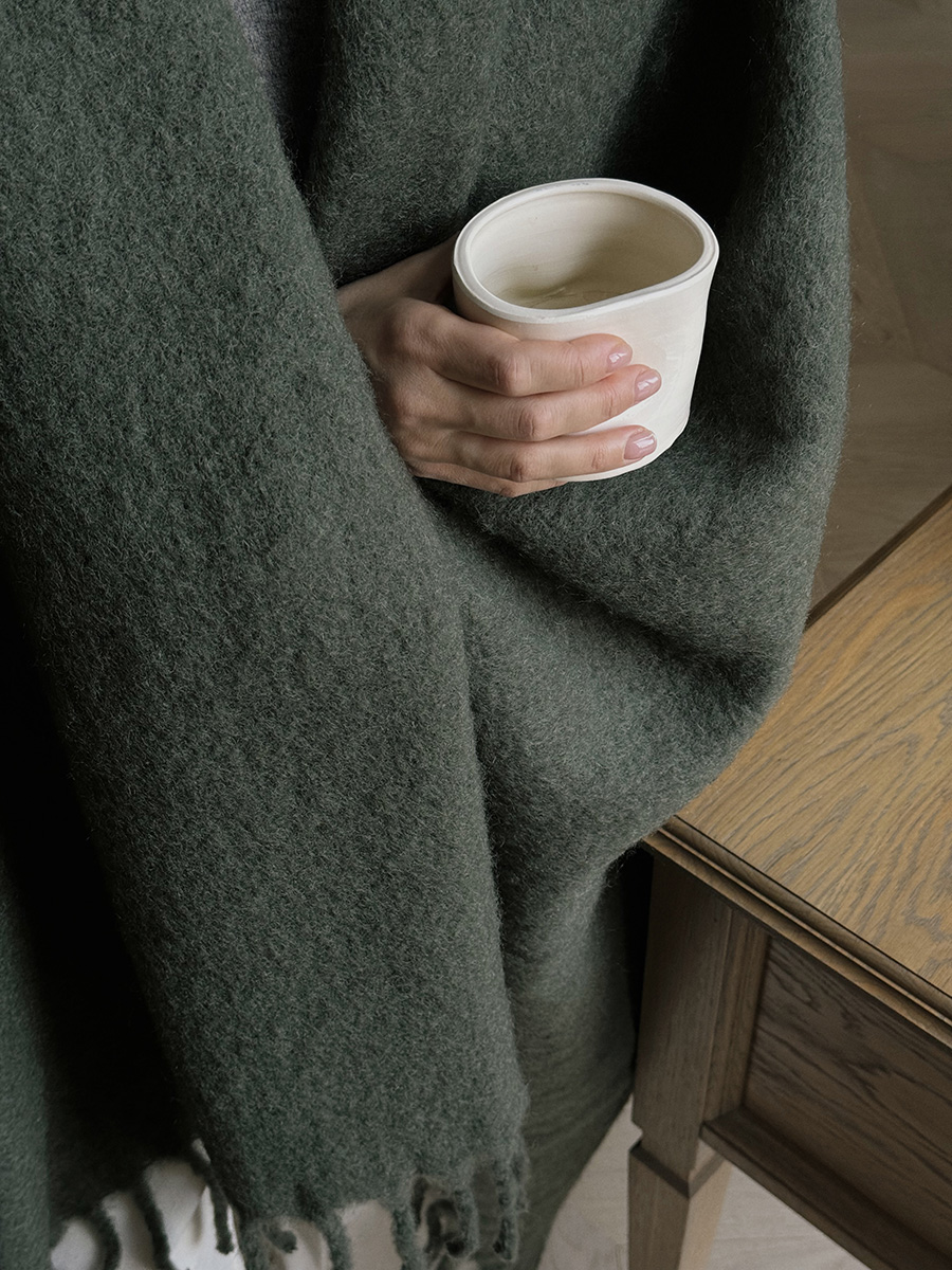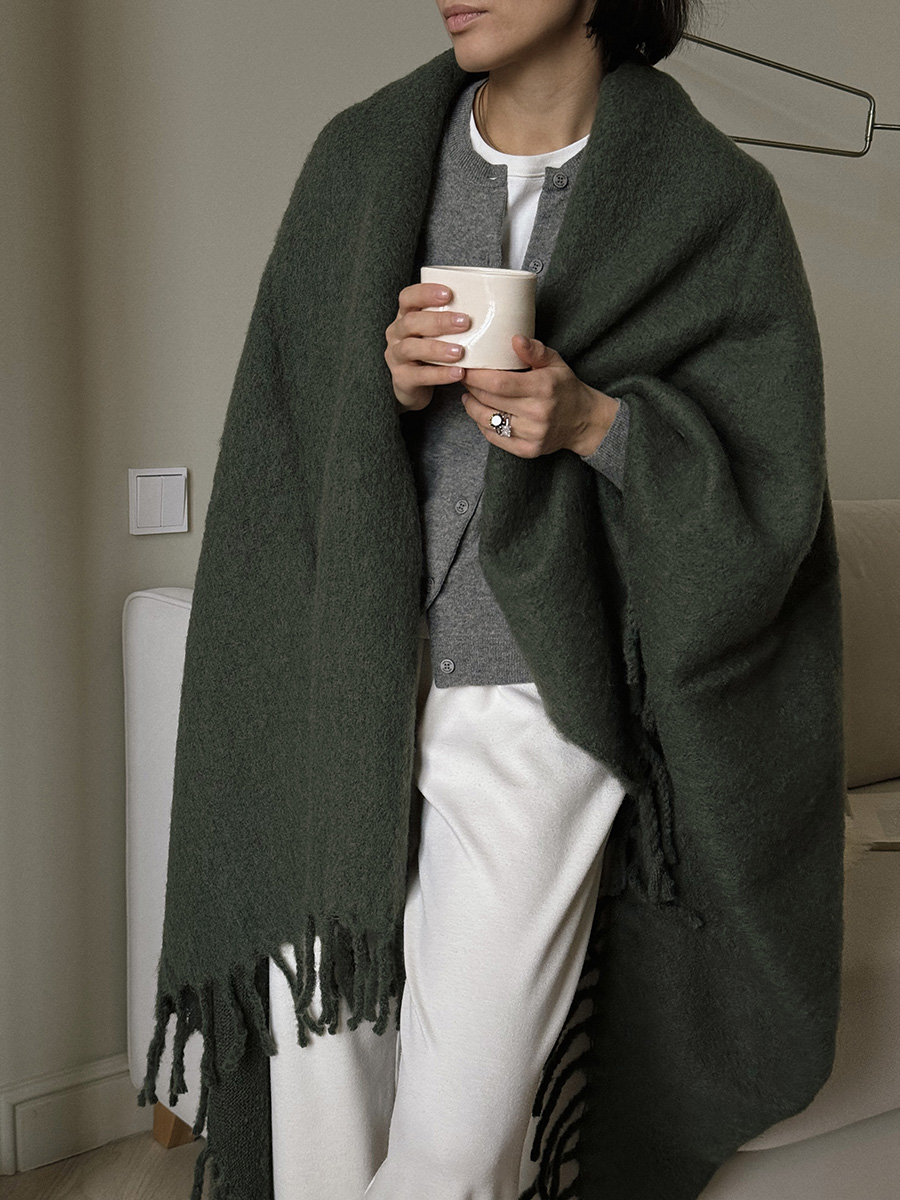 Мохеровый плед хвойно-зеленого цвета из коллекции Essential станет удачным дополнением любого интерьера, где ценится комфорт и внимание к деталям. Мягкое на ощупь полотно будет вашим верным спутником в прохладные вечера у камина или на пикнике на природе.