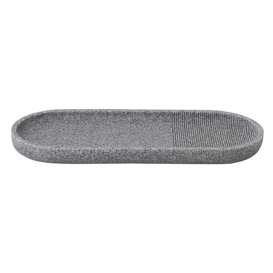 Подставка для ванных принадлежностей Loup выполнена из полирезина, стилизованного под натуральный камень графитового оттенка.