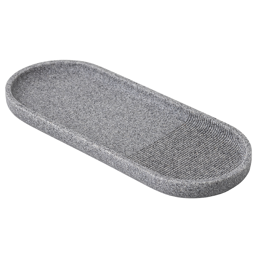 Подставка для ванных принадлежностей Loup выполнена из полирезина, стилизованного под натуральный камень темно-серого оттенка. Материал легко моется, отличается устойчивостью к влаге, ударам и царапинам, что делает его идеальным выбором для ванной комнаты. На такой подставке можно удобно разместить диспенсер для мыла и стакан для зубных щеток, чтобы защитить используемую под них поверхность от капель воды и загрязнений.