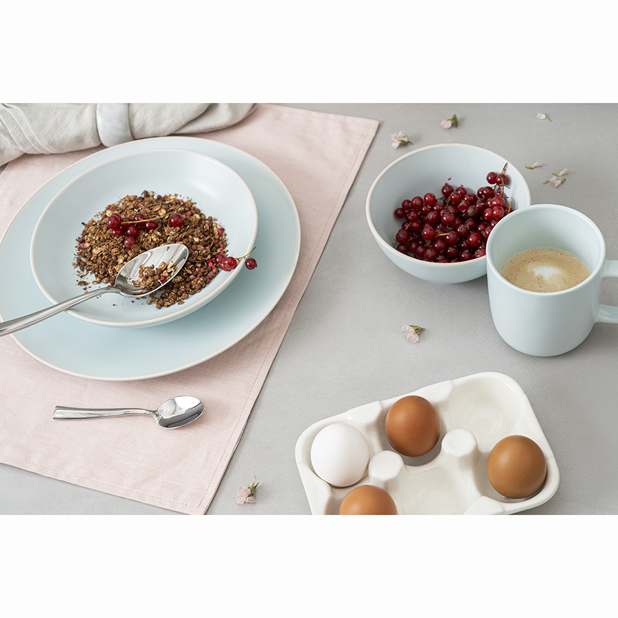В коллекции Simplicity дизайнер использовал модное сочетание двух фактур – полуматовой глазури и шершавой текстуры белой глины, создав идеальный тандем современности и традиций. Нежные оттенки голубого и розового придают посуде неповторимый шарм. Простые, элегантные формы и пастельные тона делают ее идеальным выбором для повседневной и праздничной сервировки.