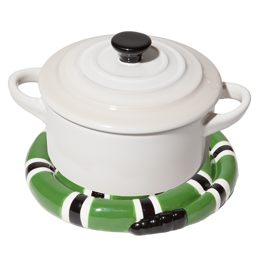 Забавная керамическая подставка Snake станет тихим стражем вашего стола, оберегая его поверхность от жара чайника или сковороды. В ее округлой форме и плавных линиях нет ни капли агрессии — лишь гармоничная геометрия и скульптурная завершенность. Эта подставка не только физически защищает стол, но и символически охраняет пространство вашего очага.