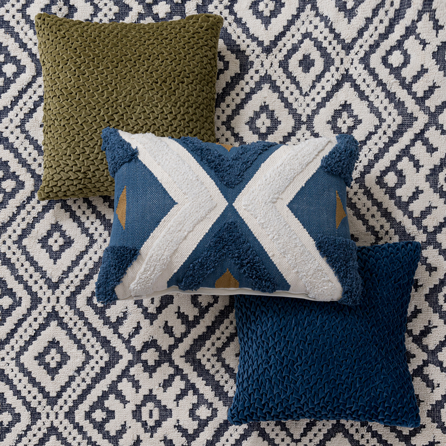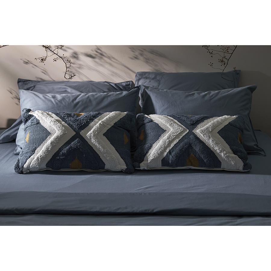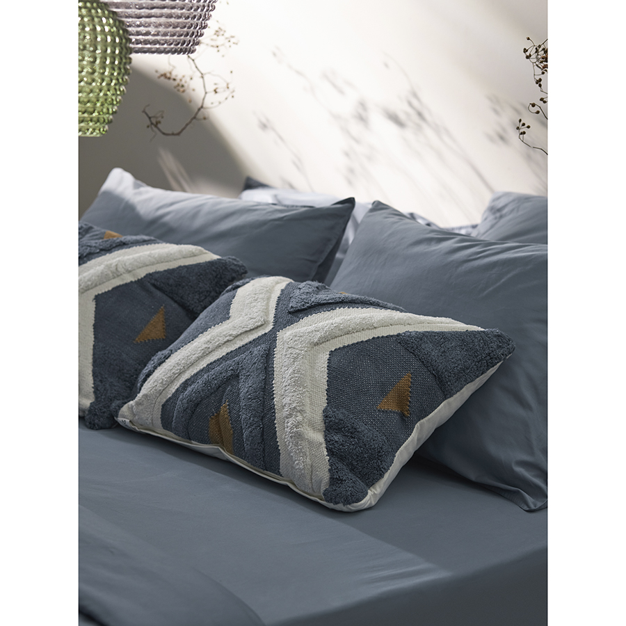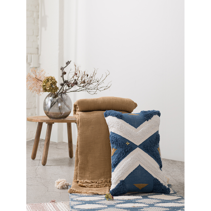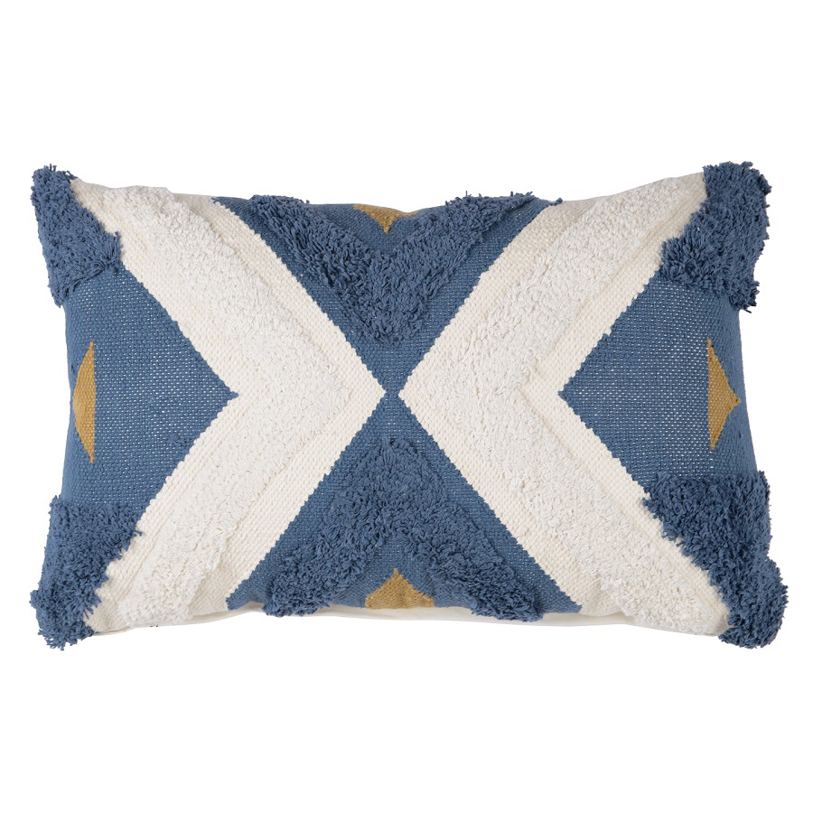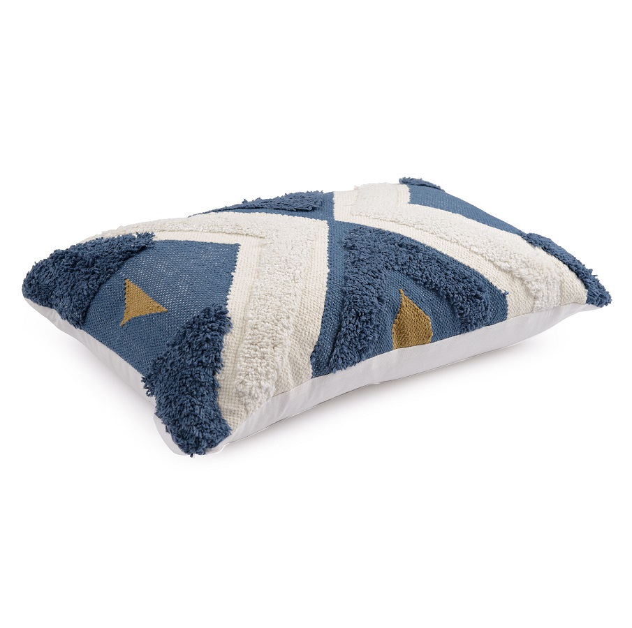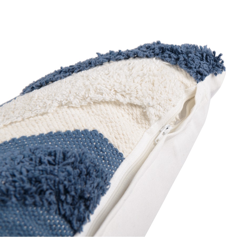 Декоративная подушка с объемным узором из коллекции Ethnic станет акцентом в любом современном интерьере. Броский объемный декор в контрастной сине-белой гамме добавит уюта в спальне или гостиной в стиле сканди, минимализм или фьюжн. Наполнитель – эластичный полиэстер, благодаря которому подушка быстро принимает форму и не деформируется после стирок. Чехол изготовлен из прочного, плотного 100% хлопка, который не электризуется и не вызывает аллергию. Чехол на молнии легко снимается при необходимости. Плотность ткани - 325GSM.