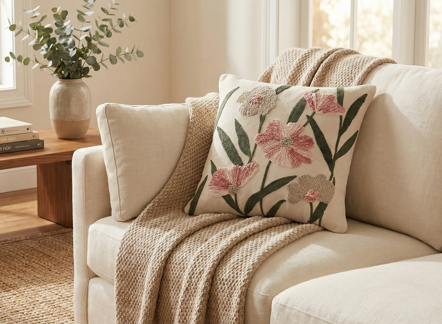 - Вышитый узор добавляет в дизайн элемент ручной работы, а также делает декор более привлекательным и износостойким.