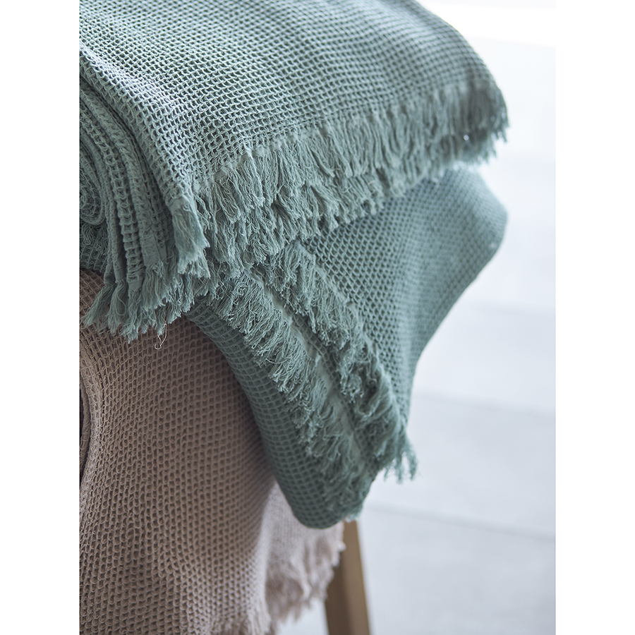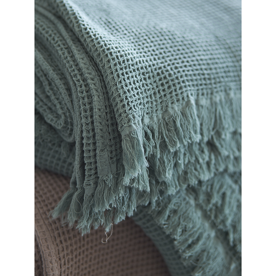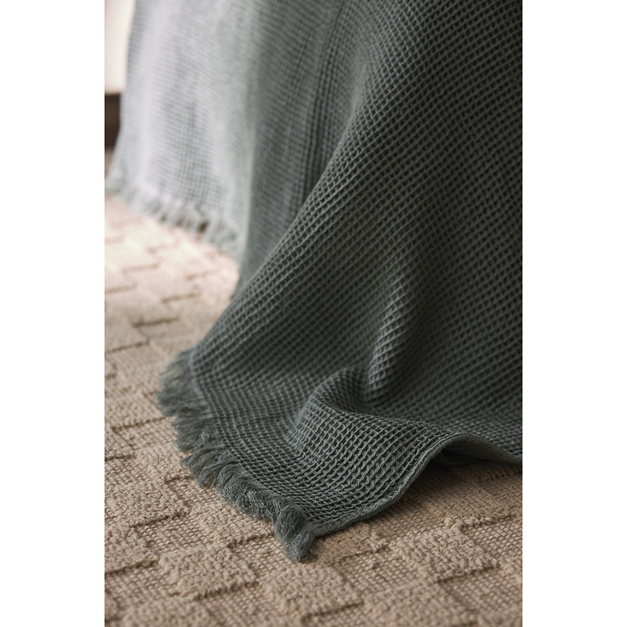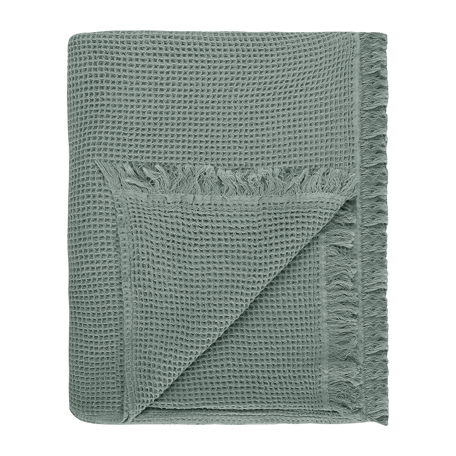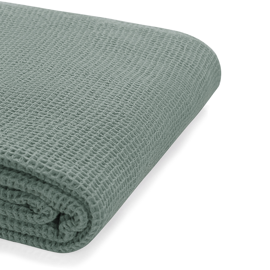 Покрывало вафельное из хлопка цвета шалфея из коллекции Essential, 230х250 см