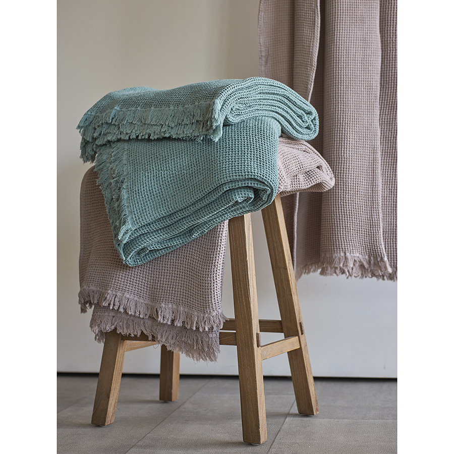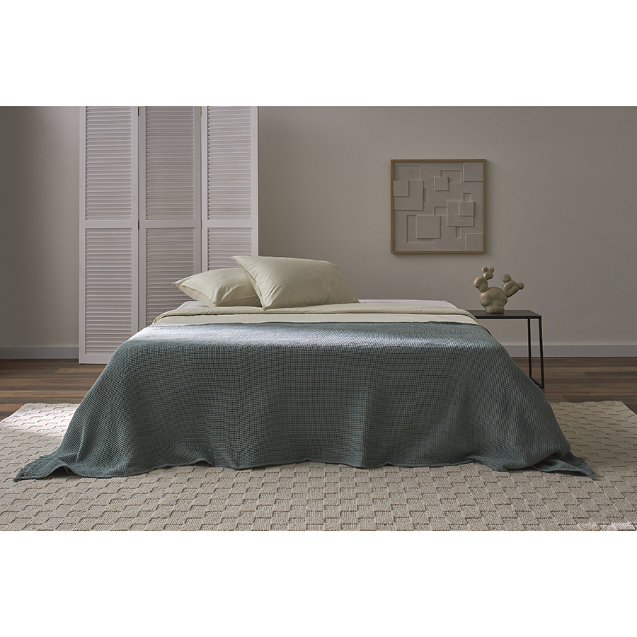 - Благодаря необычной “вафельной” фактуре покрывало выглядит стильно, при этом простое в уходе и практически не мнется.