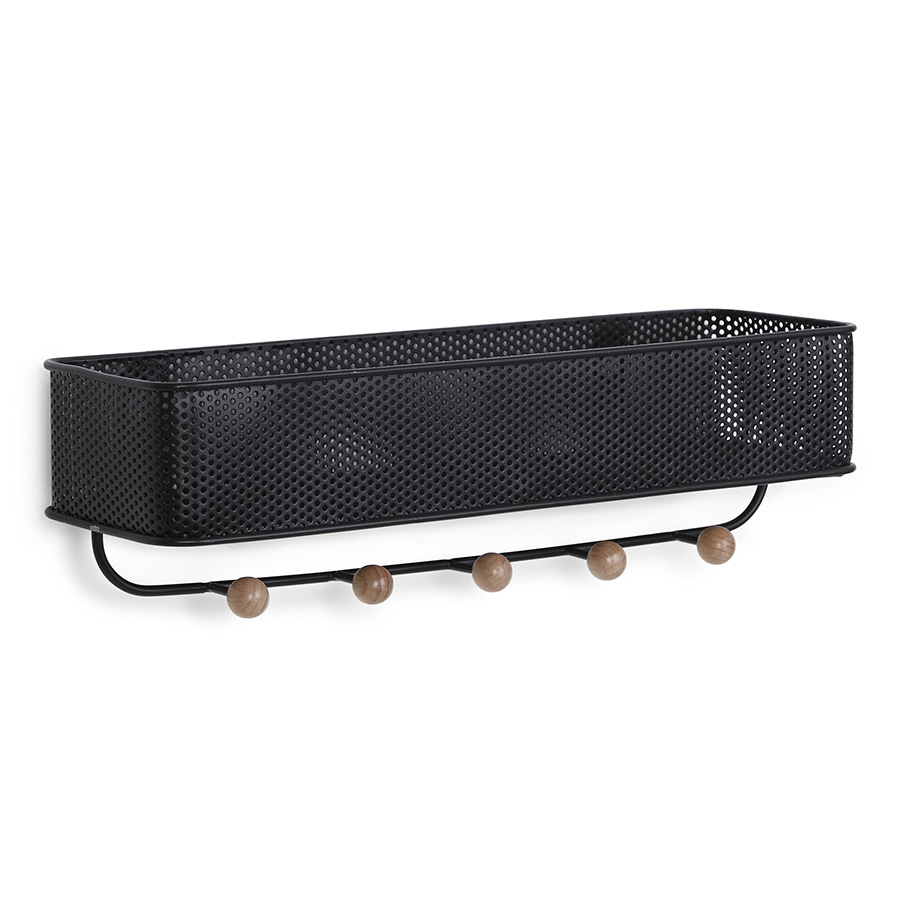 Настенный органайзер выполнен из перфорированного металла и натурального дерева. Пять крючков с круглыми деревянными наконечниками подойдут для ключей и аксессуаров. Сочетается по стилю с предметами из коллекции Promenade.