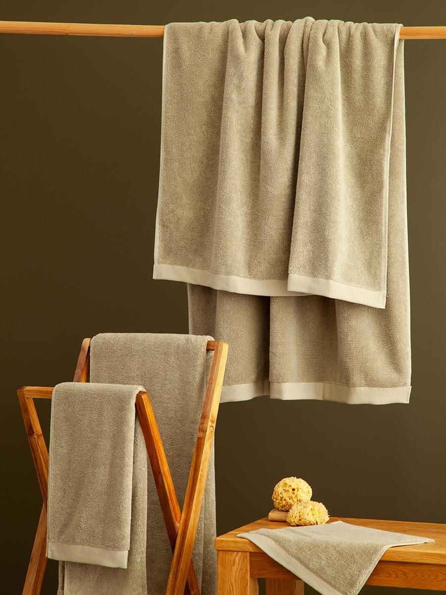 Полотенце банное бежево-серого цвета из коллекции Essential, 90х150 см