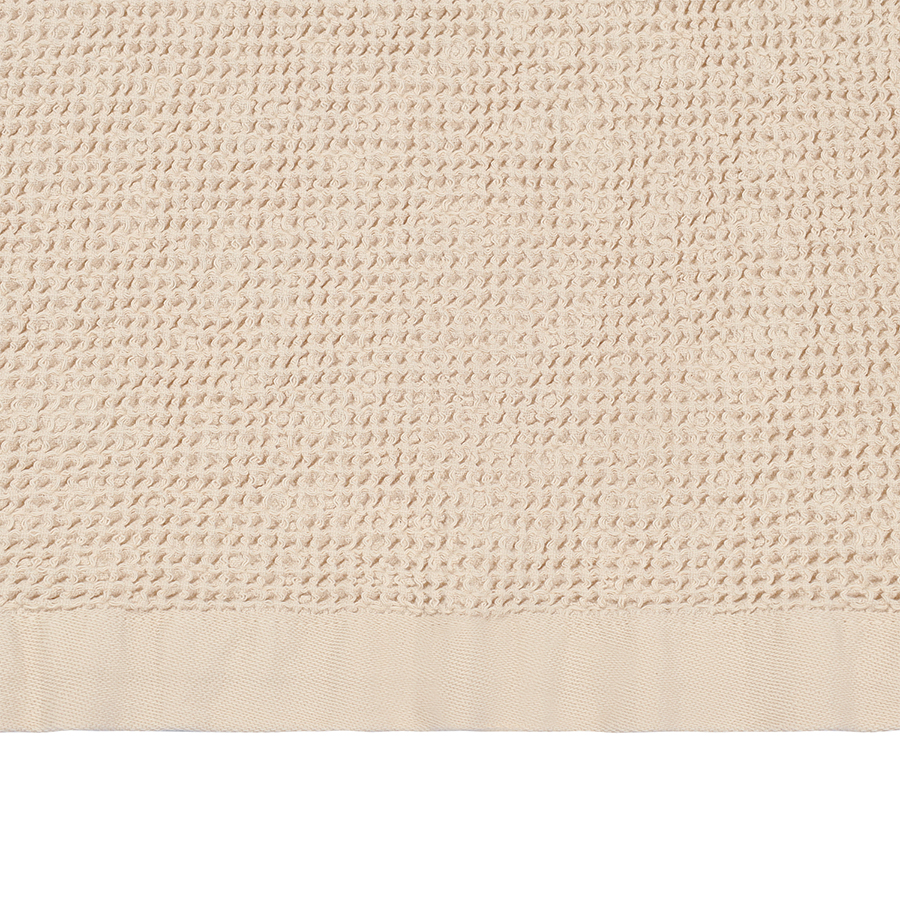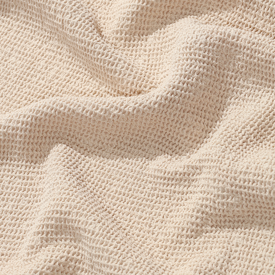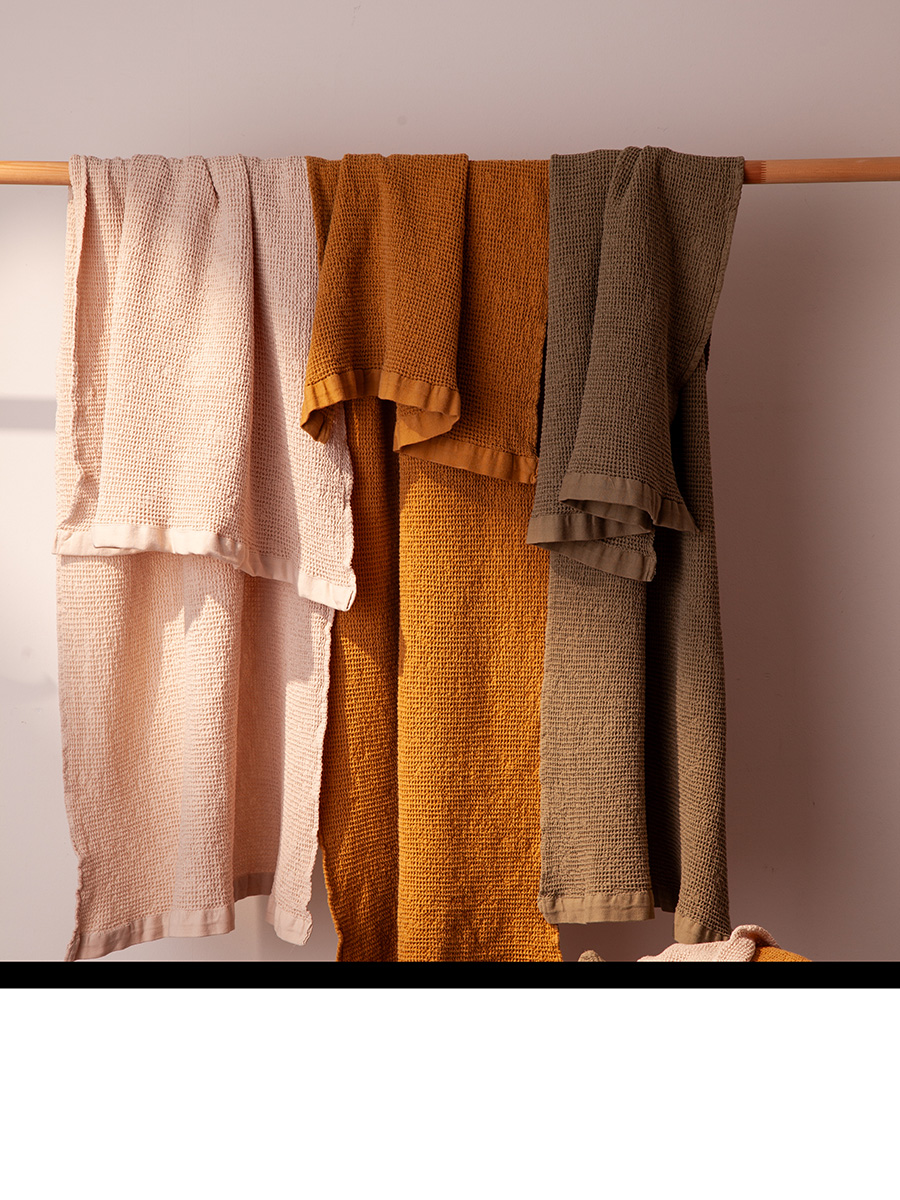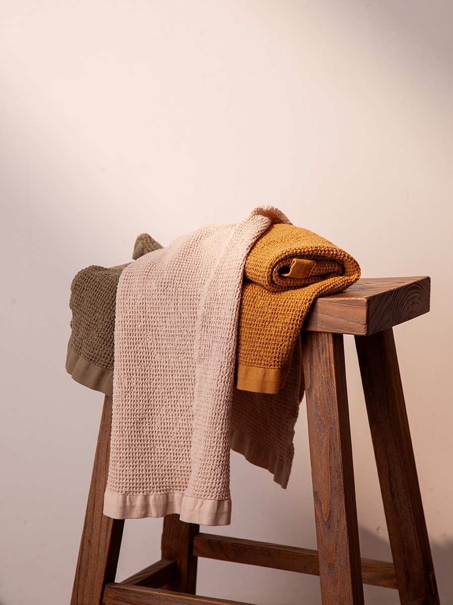 - Благодаря вафельному плетению материал хорошо пропускает воздух, быстро сохнет и отличается легкостью.