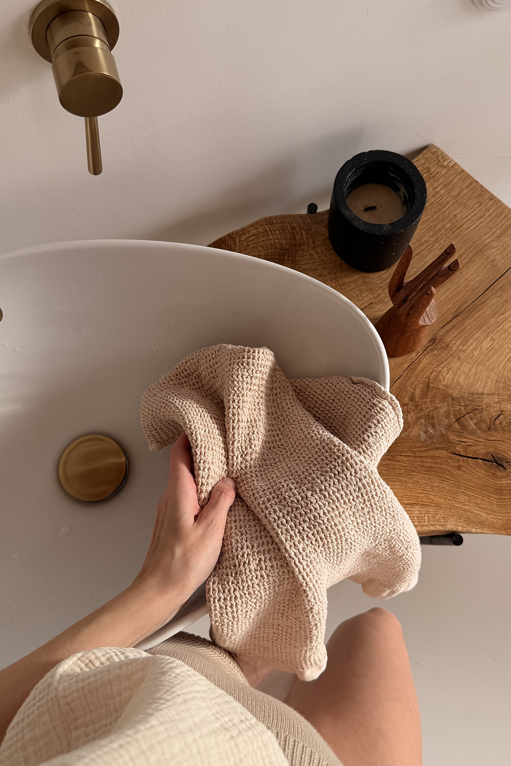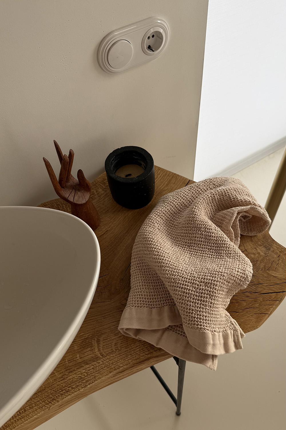 - Полотенце нейтрального оттенка прекрасно вписывается в интерьер в любой цветовой гамме.