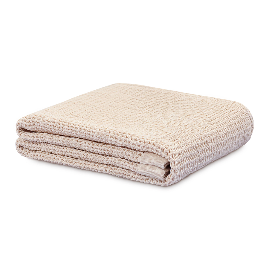- Благодаря вафельному плетению материал хорошо пропускает воздух, быстро сохнет и отличается легкостью.