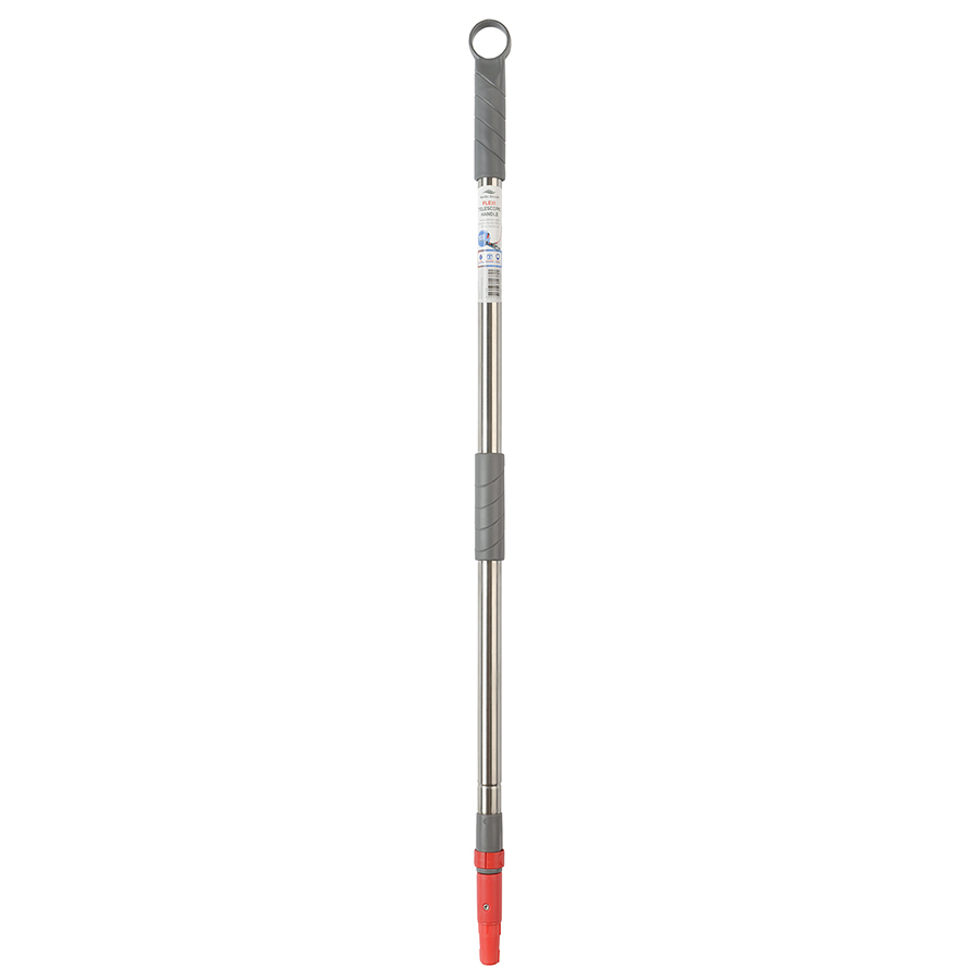 Раздвижная ручка для швабры в комплекте с гибкой штангой облегчат уборку в труднодоступных местах. Телескопическая система позволяет раздвинуть штангу до 160 см. Выполненная из прочной нержавеющей стали ручка устойчива к механическим воздействиям и коррозии. В комплекте с гибкой штангой 40 см ручка эффективно справится с любыми загрязнениями даже в труднодоступных местах. Аксессуар снабжен удобным механизмом, который фиксирует две его части в раздвижном положении, препятствуя самопроизвольному сложению. Также ручка дополнена пластиковым колпачком с кольцом для подвешивания.