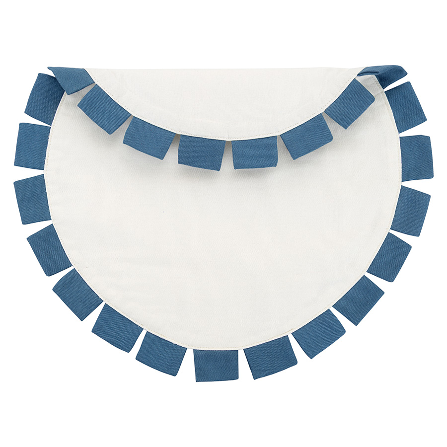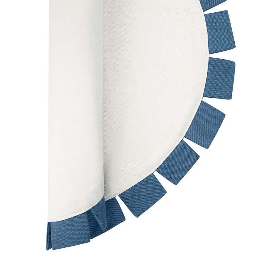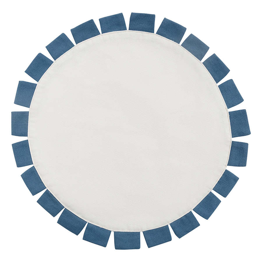 С помощью этой салфетки можно сделать повседневную сервировку чуть более изысканной, а праздничной добавить стильной многослойности. Необычная голубая отделка и круглая форма смотрятся очень изящно и подходят к разным интерьерным стилям. Кроме того, такие салфетки очень практичны — они защищают скатерть и поверхность стола от загрязнений.