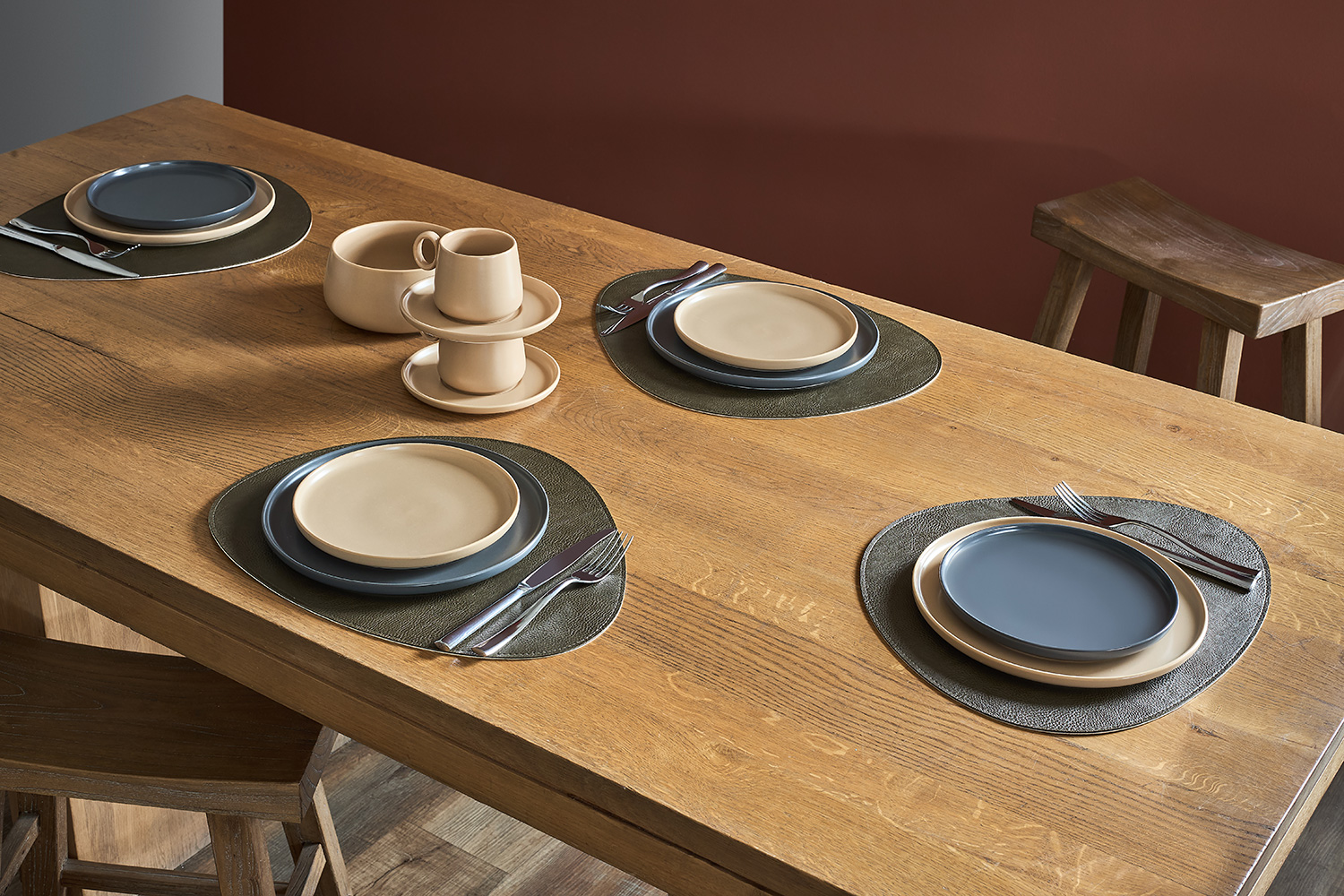 - Имеет оригинальную каплевидную форму и оптимальные размеры для размещения блюд, столовых приборов и посуды для напитков.