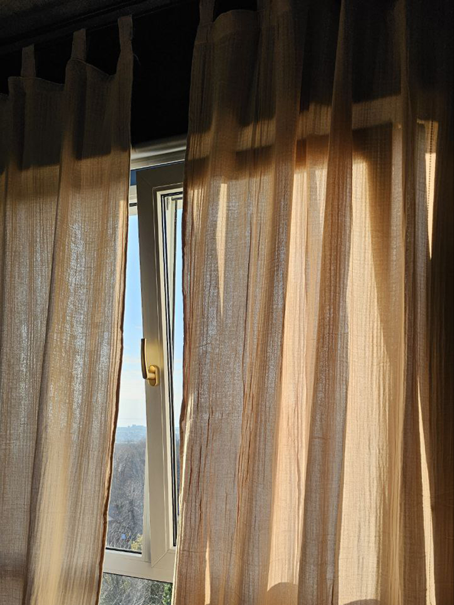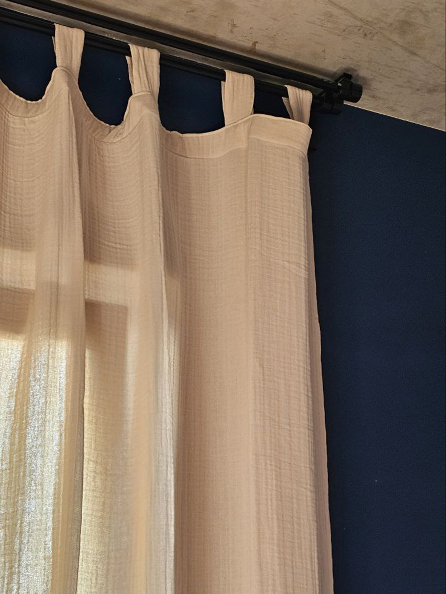 - Штора из 100% муслина не накапливает статическое электричество, не притягивает пыль, легко стирается и быстро сохнет.