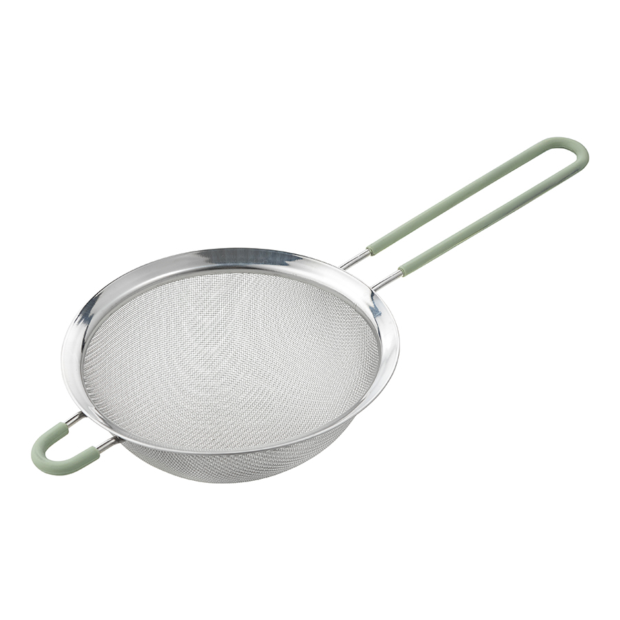 Сито из нержавеющей стали диаметром 16 см с ручкой и широким ободком подойдет для просеивания пудры, муки, какао, кофе и других мелких сыпучих продуктов. Его можно использовать, чтобы украсить сахарной пудрой выпечку, промыть и протереть ягоды, профильтровать жидкость от мякоти и ненужных остатков. Прибор также подойдет для сливания макарон, риса и других круп. Удобная стальная петля с силиконовой насадкой надежно удерживает ситечко на посуде, не давая соскользнуть, а также может использоваться для навески.
