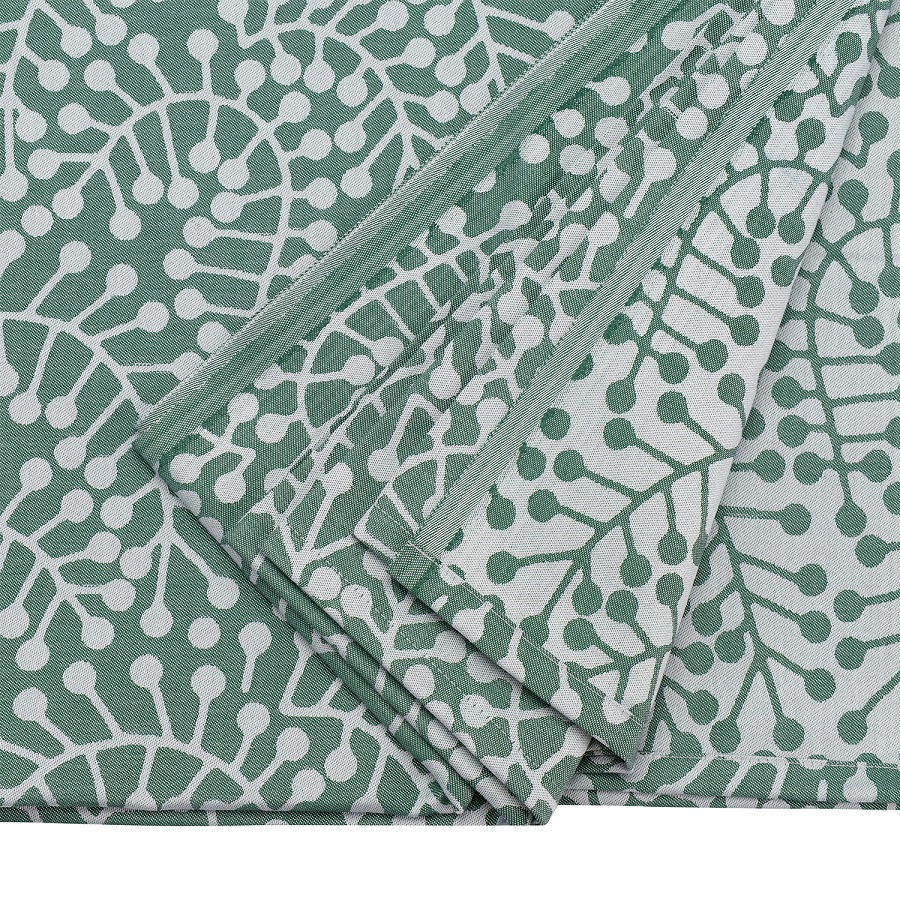 Скатерть из хлопка зеленого цвета с жаккардовым рисунком Спелая смородина из коллекции Scandinavian touch внесет разнообразие в повседневную и неформальную праздничную сервировку. Изделие с авторским дизайном, разработанным одним из ведущих финских агентств, органично впишется в любой современный интерьер. Модель выполнена из плотного хлопка - прочного материала, который хорошо впитывает влагу и не деформируется после множества стирок.