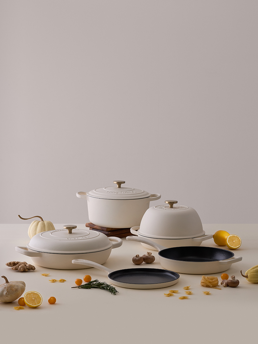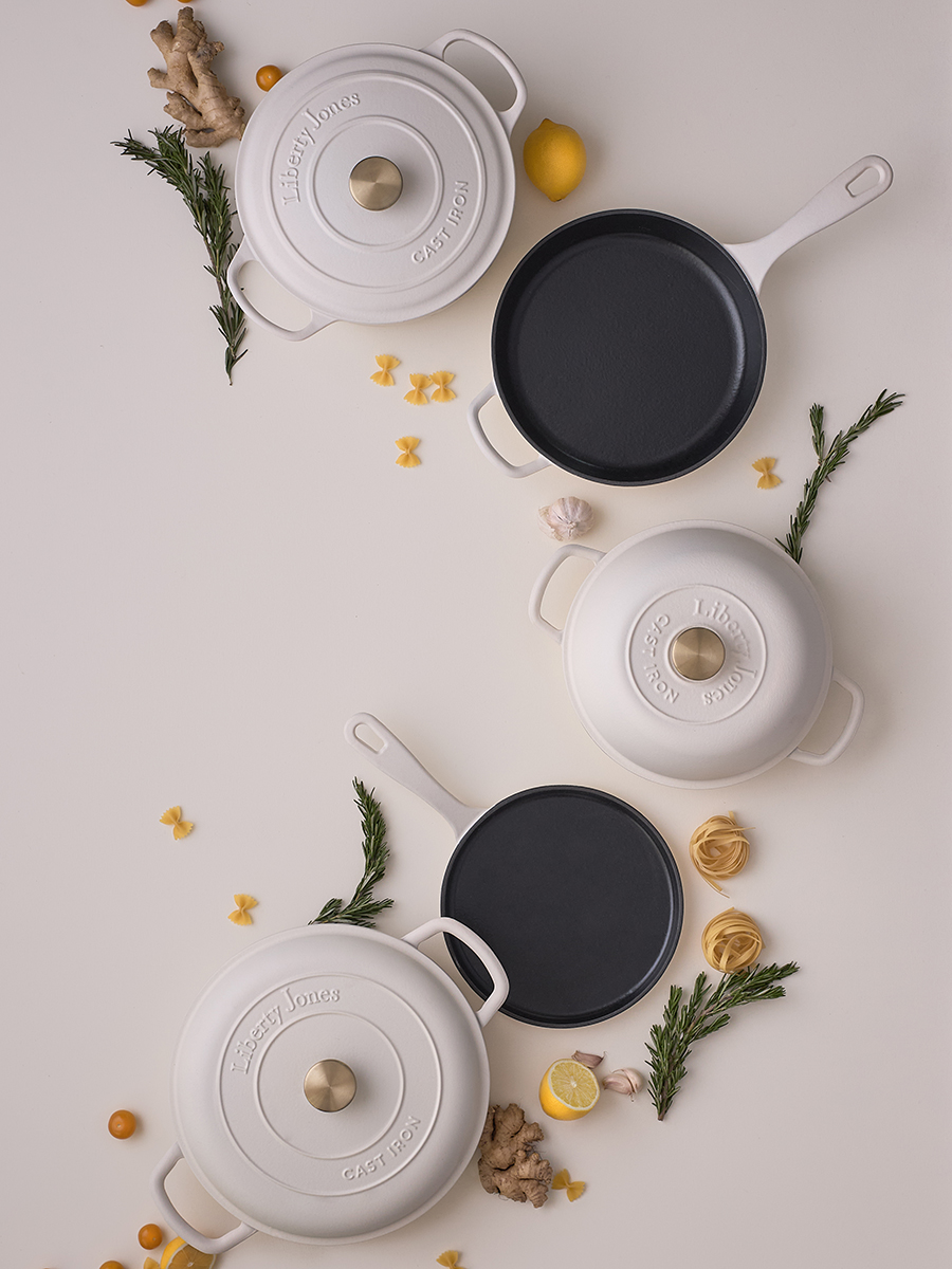 «Шеффилд» от бренда Liberty Jones – линейка чугунной посуды, которая будет служить нескольким поколениям. Тройной слой эмали на 70% увеличивает износостойкость покрытия по сравнению с двухслойными аналогами. Такой же технологии придерживаются именитые премиальные французские бренды посуды. Коллекция доступна в двух цветах: молочном со светлой эмалью и бургунди с черной эмалью.