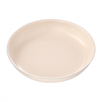 Материалы: алюминий, керамическое покрытие. Размер (ВхШхГ): 5,1х25,6х25,6 см. Диаметр по внешнему краю: 25,6 см. Диаметр по внутреннему краю: 24 см. Диаметр дна снаружи: 16 см. Диаметр дна изнутри: 20 см. Высота стенки изнутри: 4,7 см. Толщина дна и стенок: 0,3 см. Цвет: молочный.