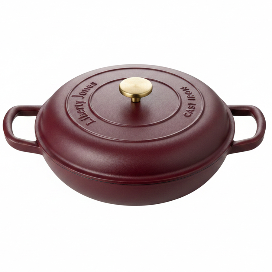 «Шеффилд» от бренда Liberty Jones – линейка чугунной посуды, которая будет служить нескольким поколениям. Тройной слой эмали на 70% увеличивает износостойкость покрытия по сравнению с двухслойными аналогами. Такой же технологии придерживаются именитые премиальные французские бренды посуды. Коллекция доступна в двух цветах: молочном со светлой эмалью и бургунди с черной эмалью.