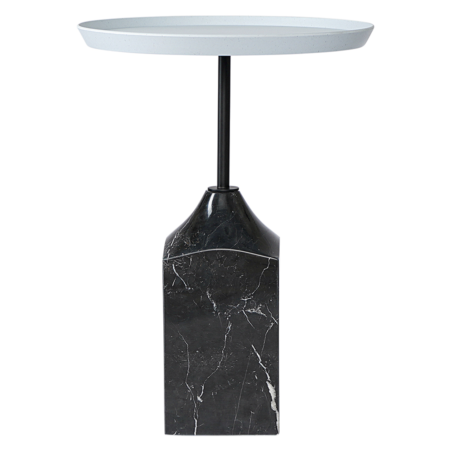 Материалы: столешница – переработанный материал, каркас – сталь, основание – мрамор. Размеры: 37,7х37,7х53 см. Цвет: серый/черно-белый.