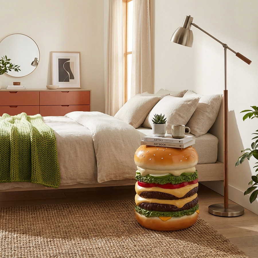 Столик-табурет Hamburger – настоящий арт-объект, который добавит яркие эмоции в любое пространство. Используйте его как дополнительное место для сидения, кофейный столик или в качестве декора – границы лишь в вашем воображении!