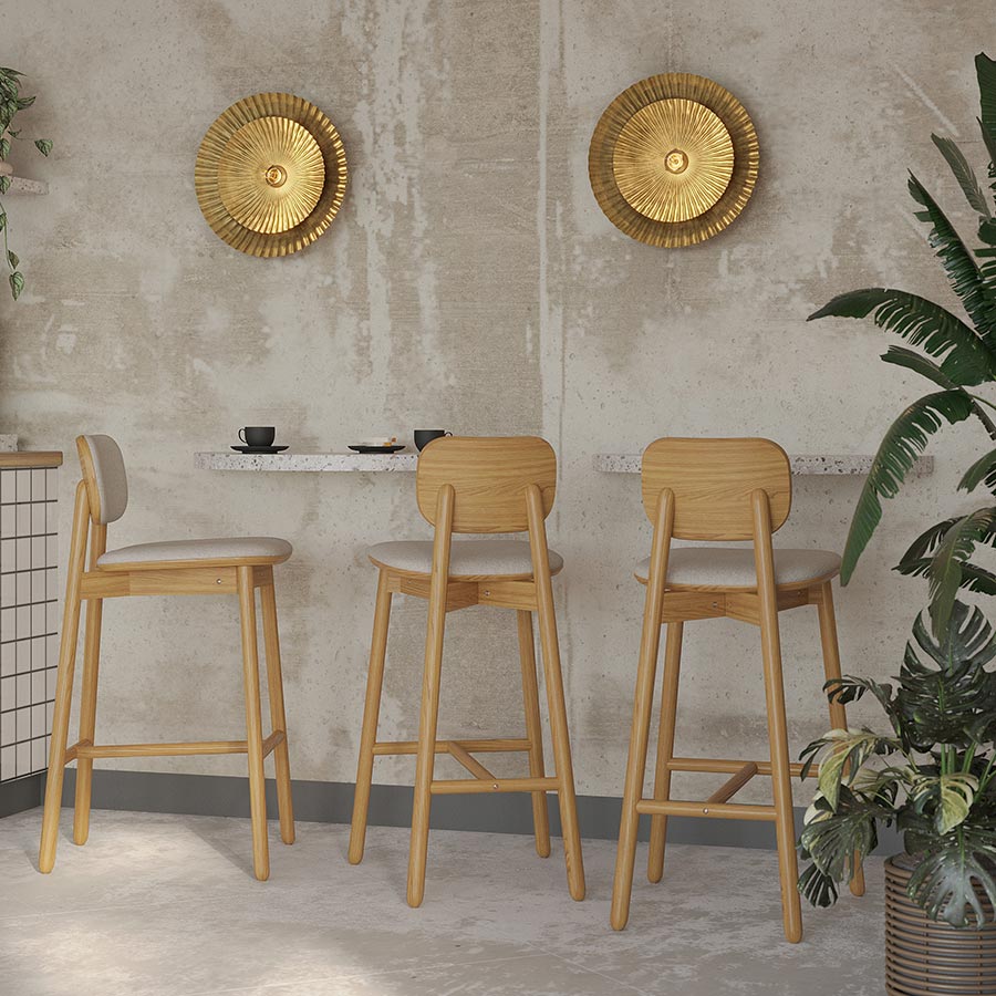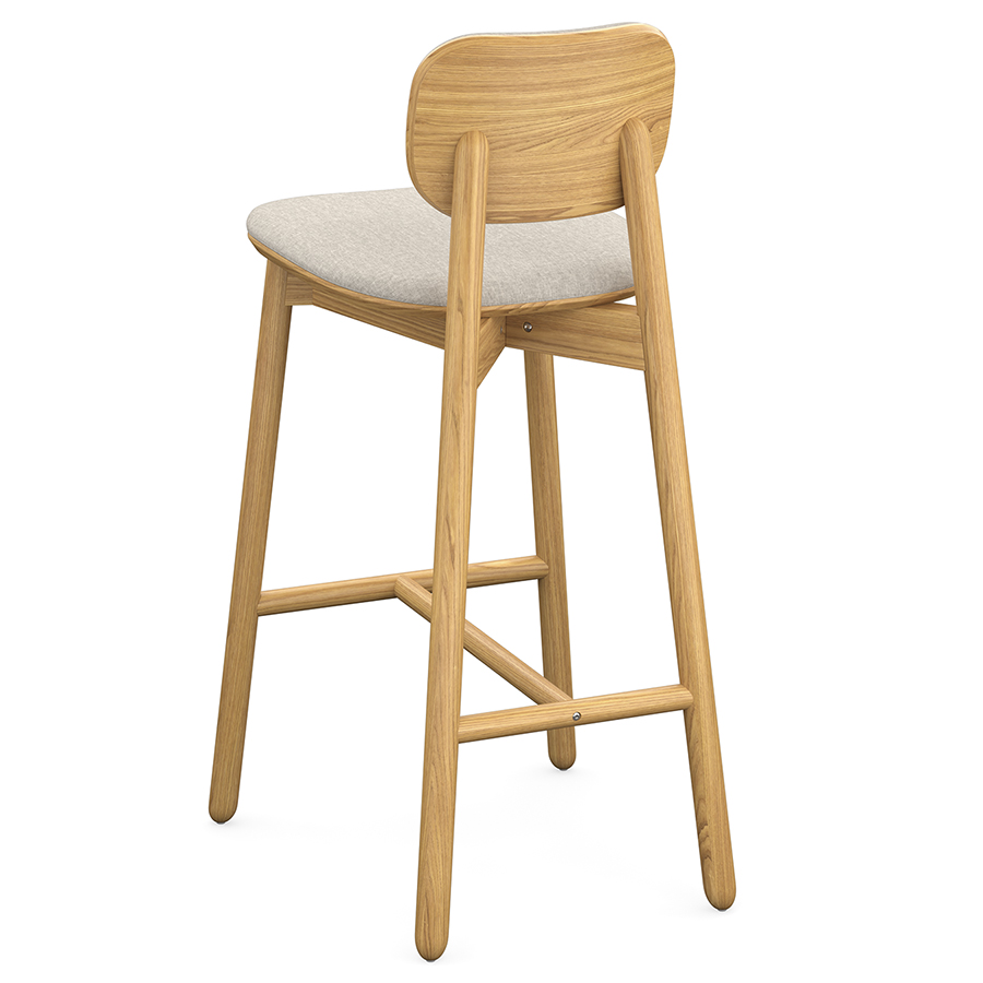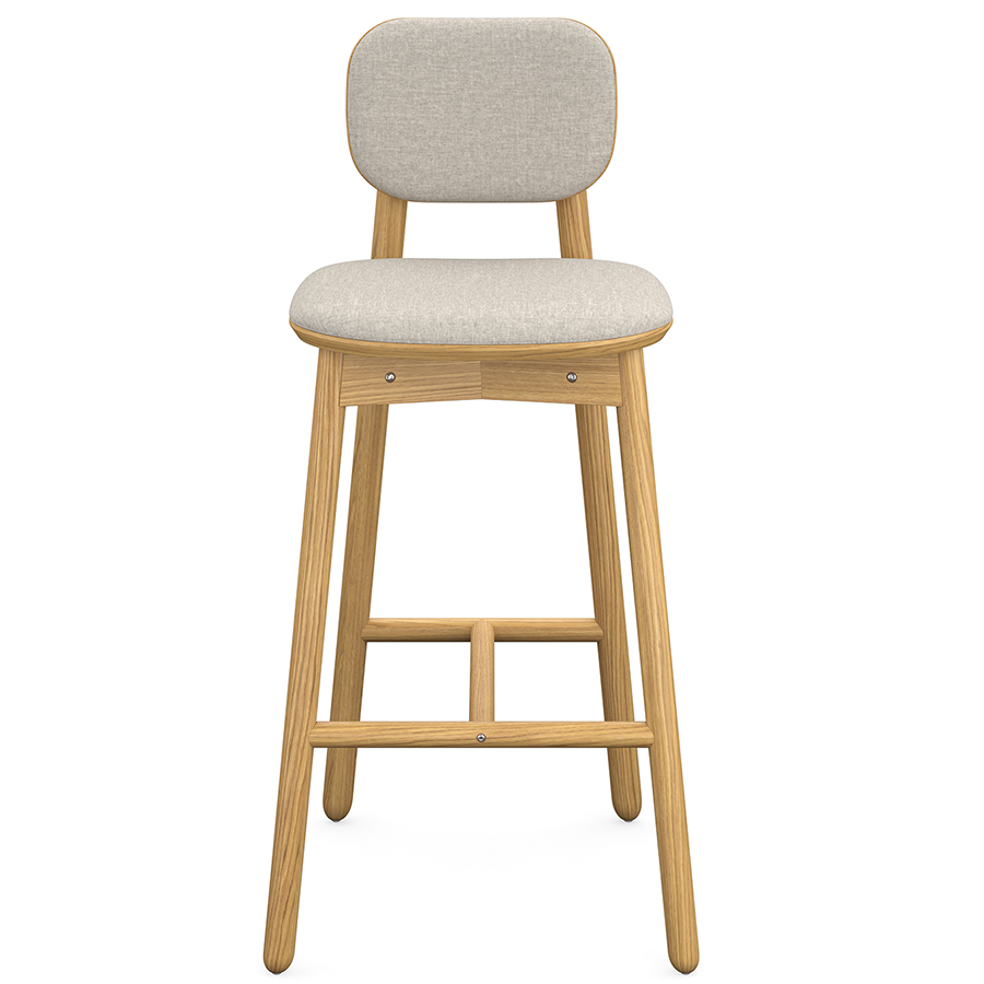 Cтул барный изготовлен из массива ясеня – твердой породы древесины, плотность и прочность которой не уступает характеристикам дуба. Благодаря прекрасным эксплуатационным свойствам материала готовое изделие не подвержено преждевременному износу, деформации, имеет высокие показатели практичности и экологической безопасности. Сиденье и спинка с мягкими накладками из пенополиуретана обеспечивают комфортную посадку. Обивка из рогожки обладает износостойкостью, придает модели современный вид. Наличие специальной перекладины позволяет удобно расположить ноги. Деревянная мебель с лаконичным дизайном всегда актуальна, отлично сочетается с любыми стилевыми решениями, что является ее неоспоримым преимуществом.