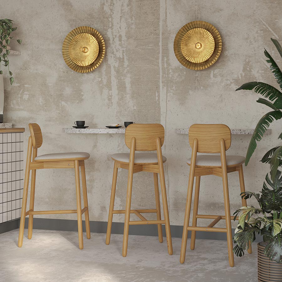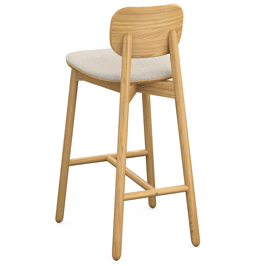 Cтул барный изготовлен из массива ясеня – твердой породы древесины, плотность и прочность которой не уступает характеристикам дуба. Благодаря прекрасным эксплуатационным свойствам материала готовое изделие не подвержено преждевременному износу, деформации, имеет высокие показатели практичности и экологической безопасности. Сиденье с мягкой накладкой из пенополиуретана обеспечивает комфортную посадку. Обивка из рогожки обладает износостойкостью, придает модели современный вид. Наличие специальной перекладины позволяет удобно расположить ноги. Деревянная мебель с лаконичным дизайном всегда актуальна, отлично сочетается с любыми стилевыми решениями, что является ее неоспоримым преимуществом.