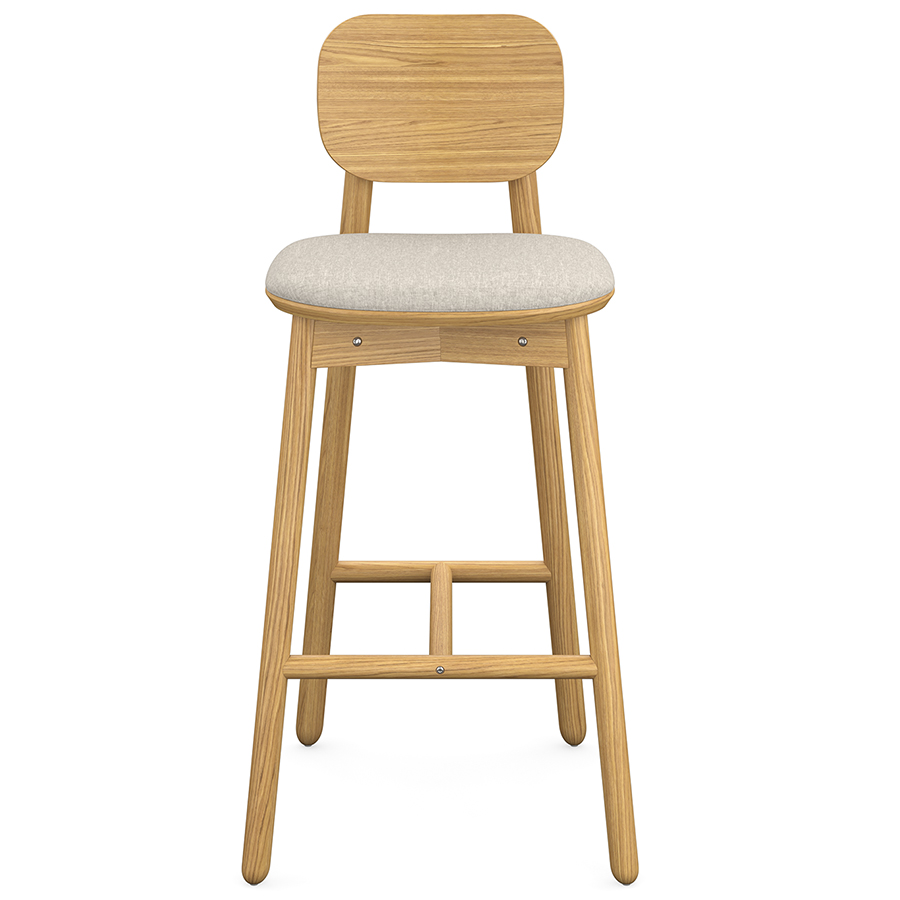 Материалы: массив ясеня, шпон ясеня, 100% пенополиуретан, 100% полиэстер. Размеры: 48х51х102 см. Высота сиденья: 74 см. Ширина сиденья: 43 см. Глубина сиденья: 43 см. Высота спинки: 30 см. Ширина спинки: 32 см. Высота подножки: 27 см. Максимальная нагрузка: 136 кг. Цвет: бежевый.