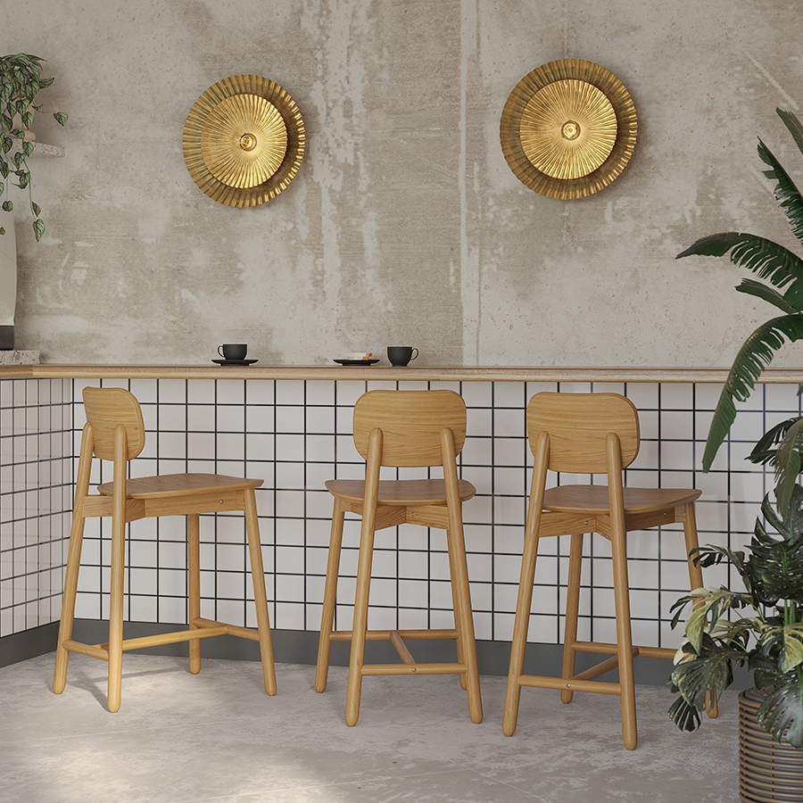 Cтул полубарный изготовлен из массива ясеня – твердой породы древесины, плотность и прочность которой не уступает характеристикам дуба. Благодаря прекрасным эксплуатационным свойствам материала готовое изделие устойчиво к износу, деформации, ударам, имеет высокие показатели практичности и экологической безопасности. Наличие специальной перекладины позволяет удобно расположить ноги. Деревянная мебель с лаконичным дизайном всегда актуальна, отлично сочетается с любыми стилевыми решениями, что является ее неоспоримым преимуществом.