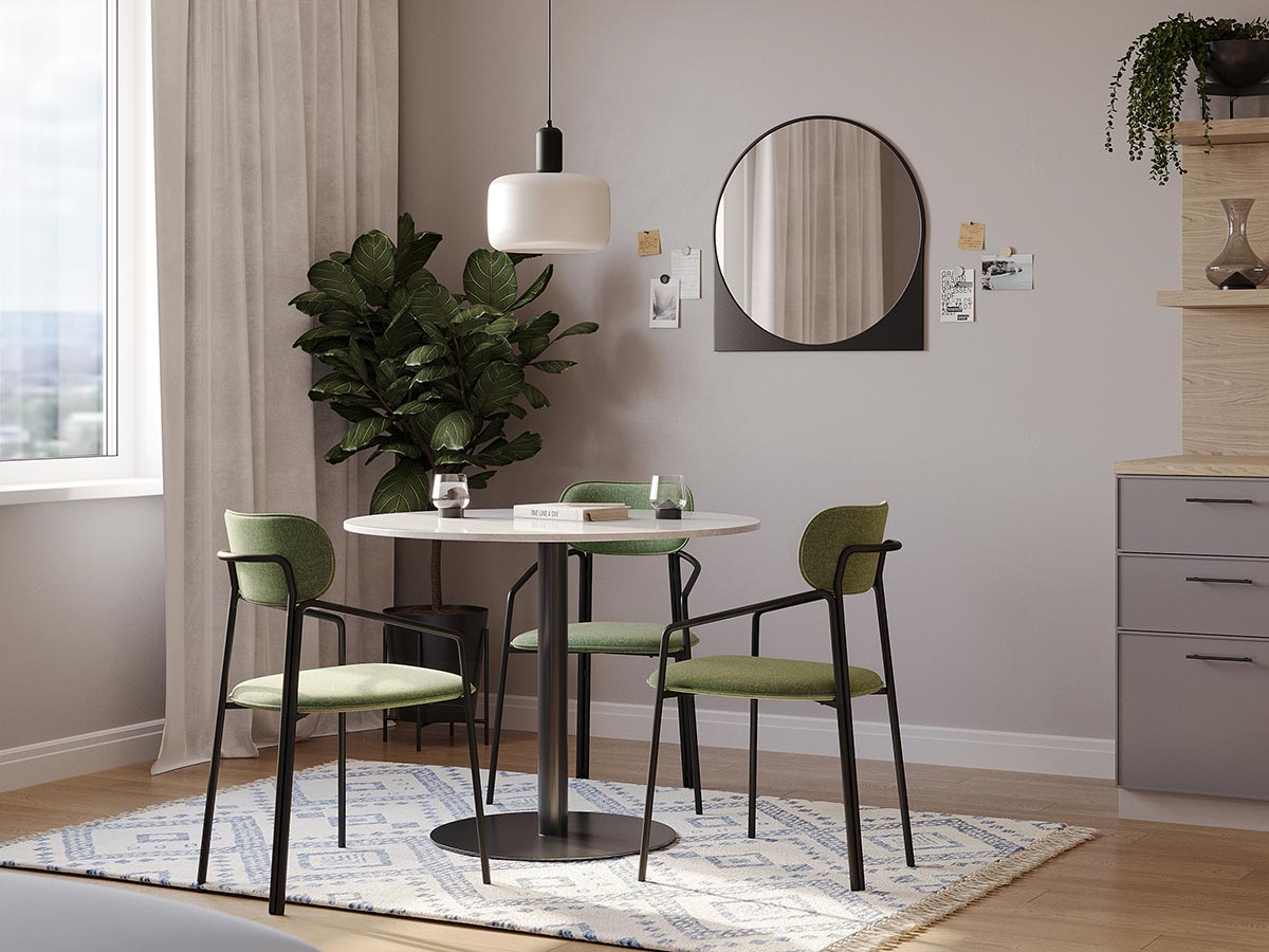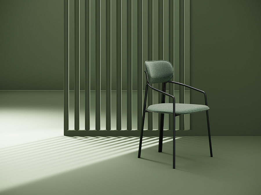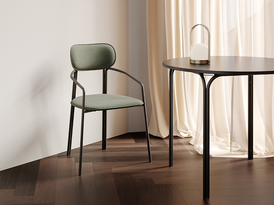 Каркас стула Round состоит из трех стремящихся вверх элементов, которые образуют округлый, словно окутывающий корпус. За счет отсутствия прямых углов создается легкий, гармоничный силуэт.