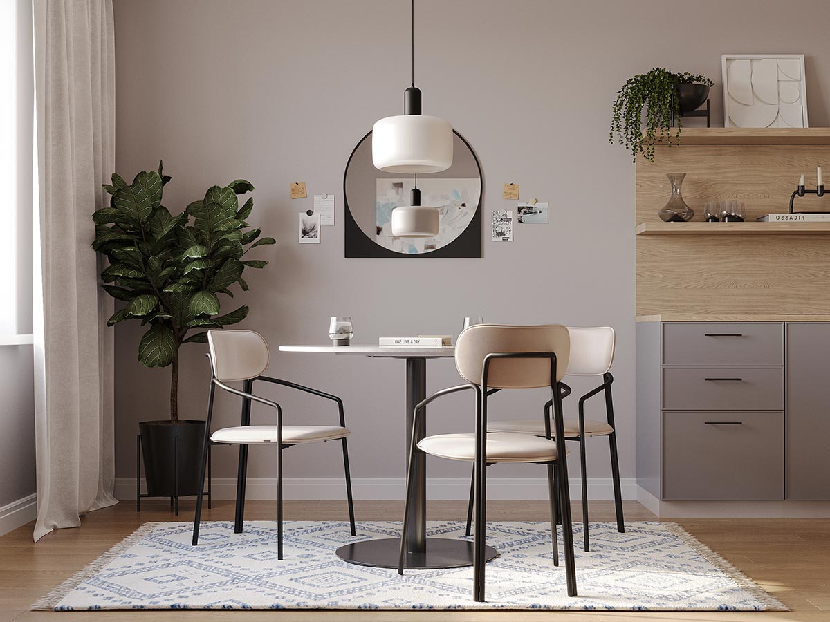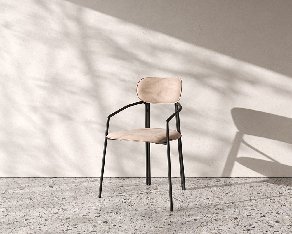 Каркас стула Round состоит из трех стремящихся вверх элементов, которые образуют округлый, словно окутывающий корпус. За счет отсутствия прямых углов создается легкий, гармоничный силуэт.