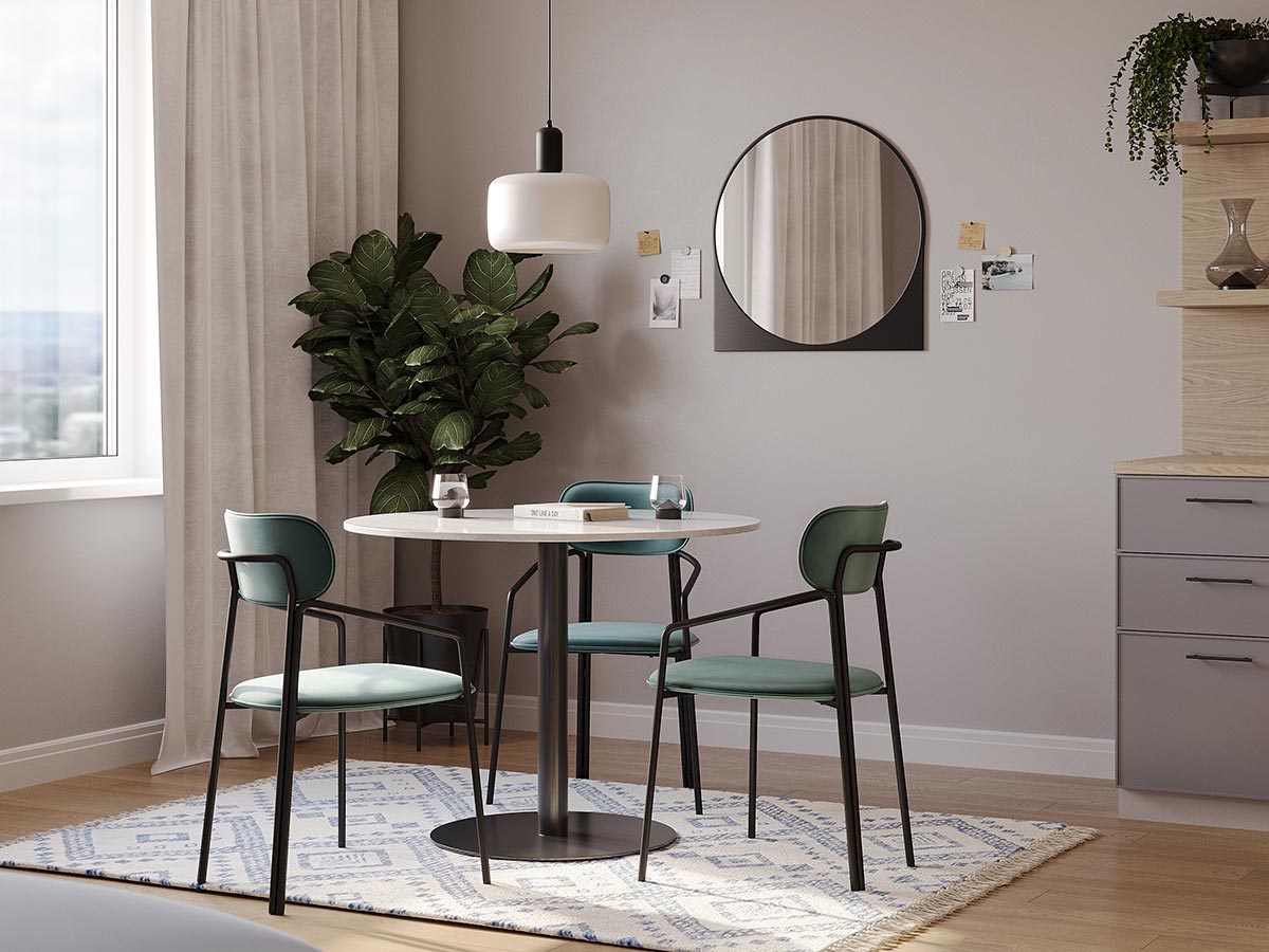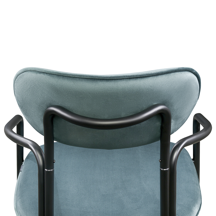 Стальное основание с порошковым покрытием делает конструкцию прочной и надежной, а мягкий велюр с бархатистой текстурой обеспечивает тактильный комфорт. Ткань обивки обладает высокими показателями износостойкости. Используемый пенополиуретан отличается комфортной плотностью и жесткостью.