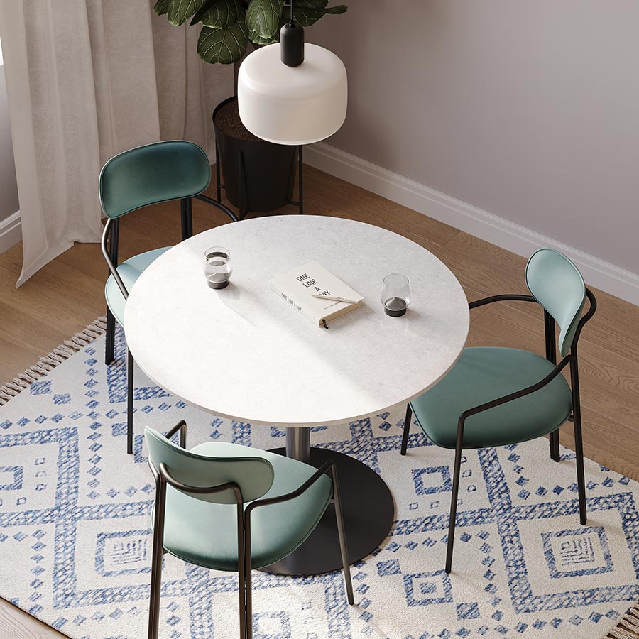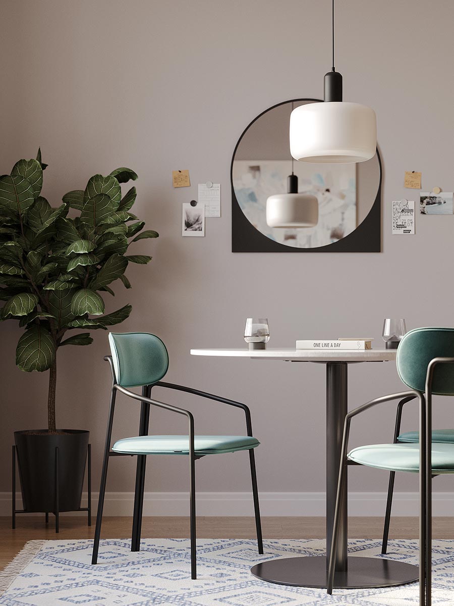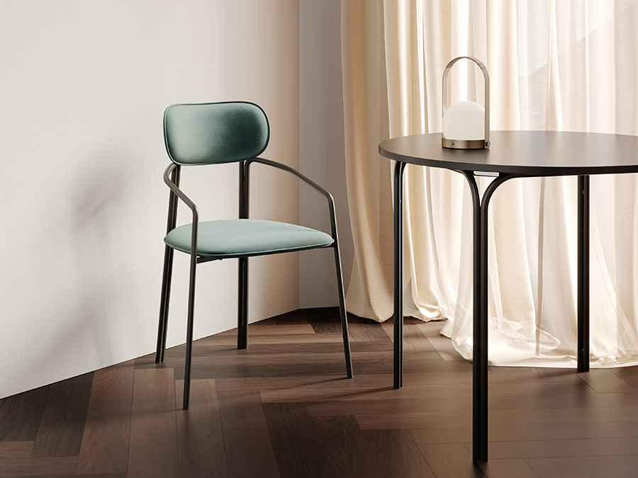 Каркас стула Round состоит из трех стремящихся вверх элементов, которые образуют округлый, словно окутывающий корпус. За счет отсутствия прямых углов создается легкий, гармоничный силуэт.