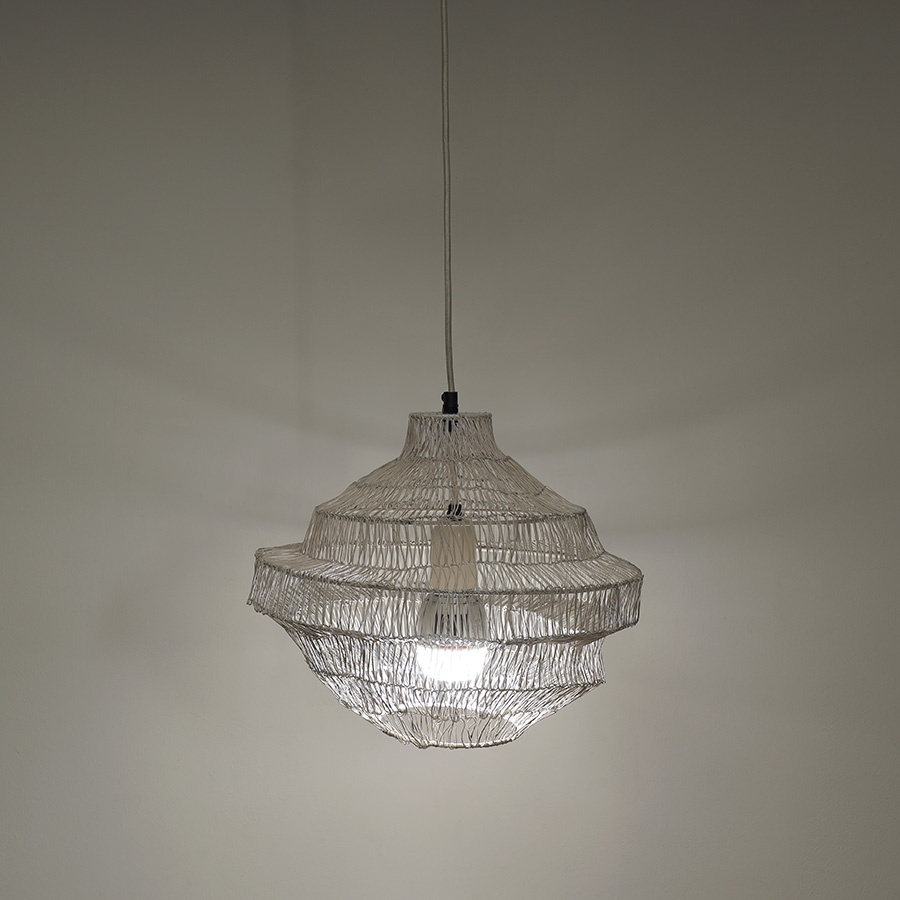 - Светильник с абажуром из железной сетки смотрится необычно и идеально подходит в качестве акцентного элемента.
