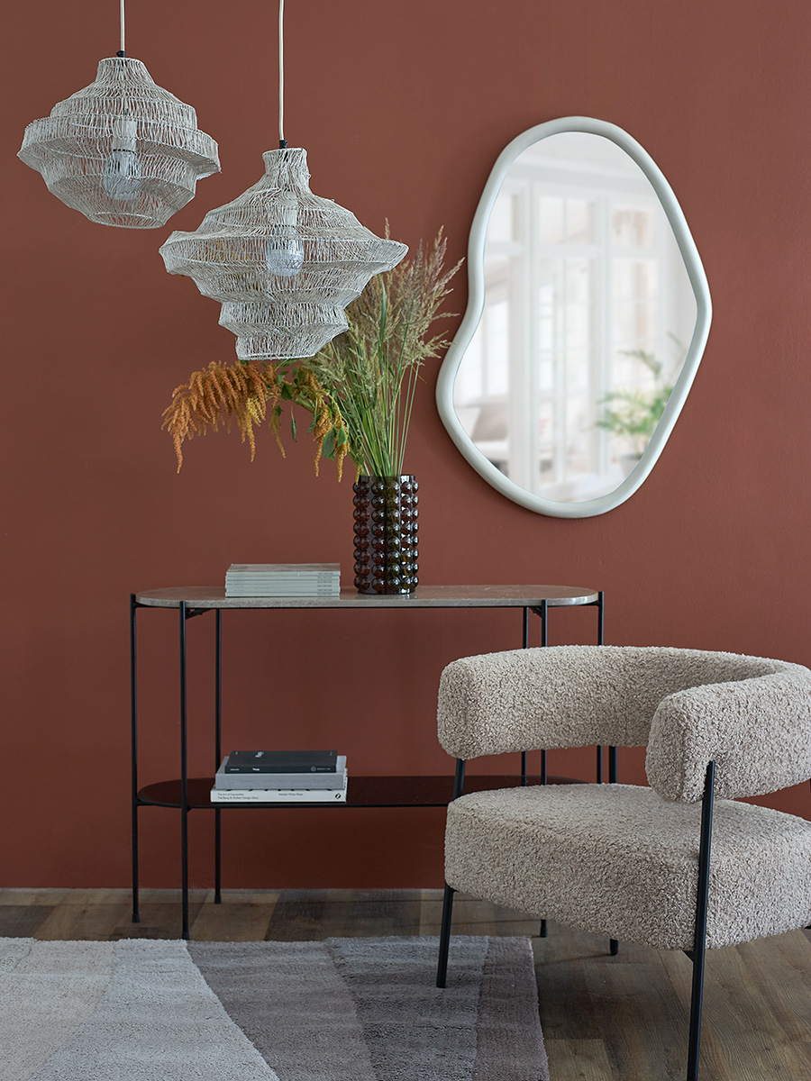 - Светильник с абажуром из железной сетки смотрится необычно и идеально подходит в качестве акцентного элемента.