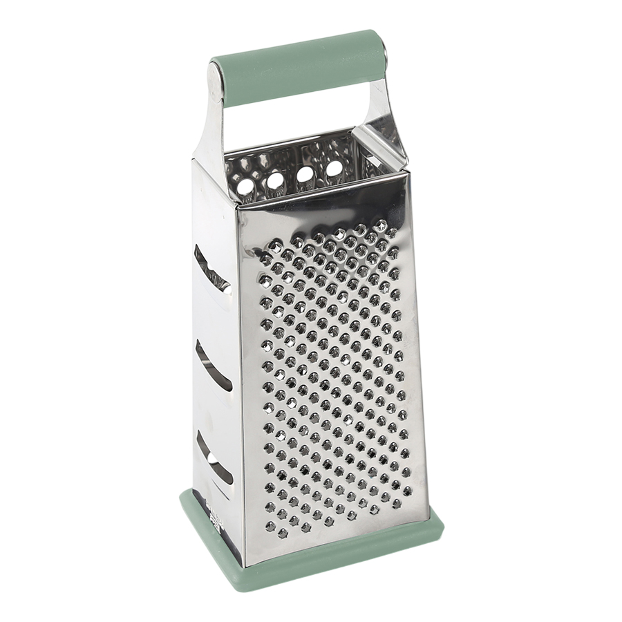 Четырехсторонняя терка из нержавеющей стали подойдет для овощей, фруктов, сыра и других продуктов. 4 рабочих поверхности прибора позволяют выбрать размер измельчения.