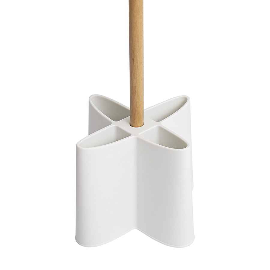 Напольная вешалка Oulof – стильный и функциональный элемент, который поможет организовать пространство для хранения верхней одежды и зонтов в прихожей. Оригинальная конструкция из двух пластиковых частей, расположенных на деревянной штанге, гармонично впишется в современный интерьер. Благодаря компактному размеру изделие сэкономит место в помещении с небольшой площадью.