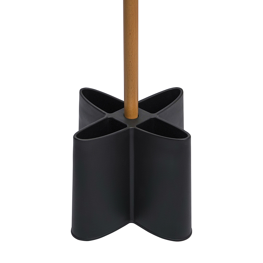 Напольная вешалка Oulof – стильный и функциональный элемент, который поможет организовать пространство для хранения верхней одежды и зонтов в прихожей. Оригинальная конструкция из двух пластиковых частей, расположенных на деревянной штанге, гармонично впишется в современный интерьер. Благодаря компактному размеру изделие сэкономит место в помещении с небольшой площадью.