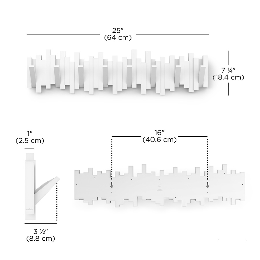 Вешалка настенная Sticks, 72 см, 8 крючков, белая от UMBRA - цена 5160 руб (МРЦ). Для того, чтобы купить данный товар оптом по выгодной цене, пожалуйста, зарегистрируйтесь на сайте.