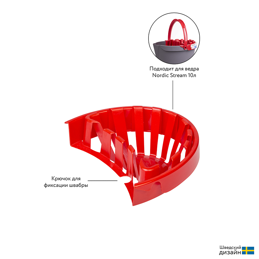 Вставка-отжим специально разработана для ведра объемом 10 л бренда Nordic Stream. С ней больше не придется пачкать и мочить руки при уборке. Приспособление обеспечивает эффективный отжим швабр Bucket с насадками из вискозы, микрофибры или хлопка. Аксессуар выполнен из высококачественного пластика, устойчивого к механическим воздействиям. Отжим легко крепится к бортам ведра. В его конструкции предусмотрено отверстие для фиксации швабры.